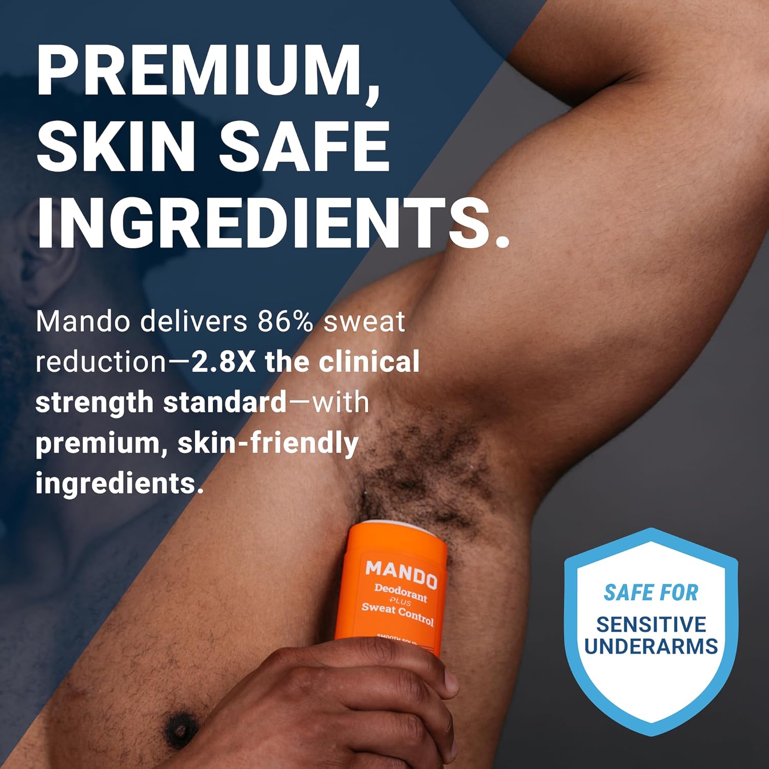 - STAY DRY AND ODOR-FREE – Mando Sweat Control is a clinical-strength antiperspirant designed for men. Delivers double protection to fight odor and sweat, keeping you fresh and dry all day.