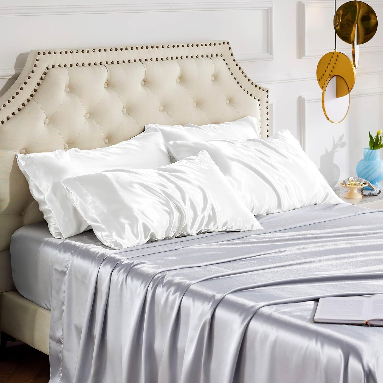 Bedsure Satin Pillowcase for Hair and Skin Queen - Pure White Silky Pillowcase Set of 4 with Envelope Closure, Similar to Silk Pillow Cases, Gifts for Women Men, 20x30 Inches