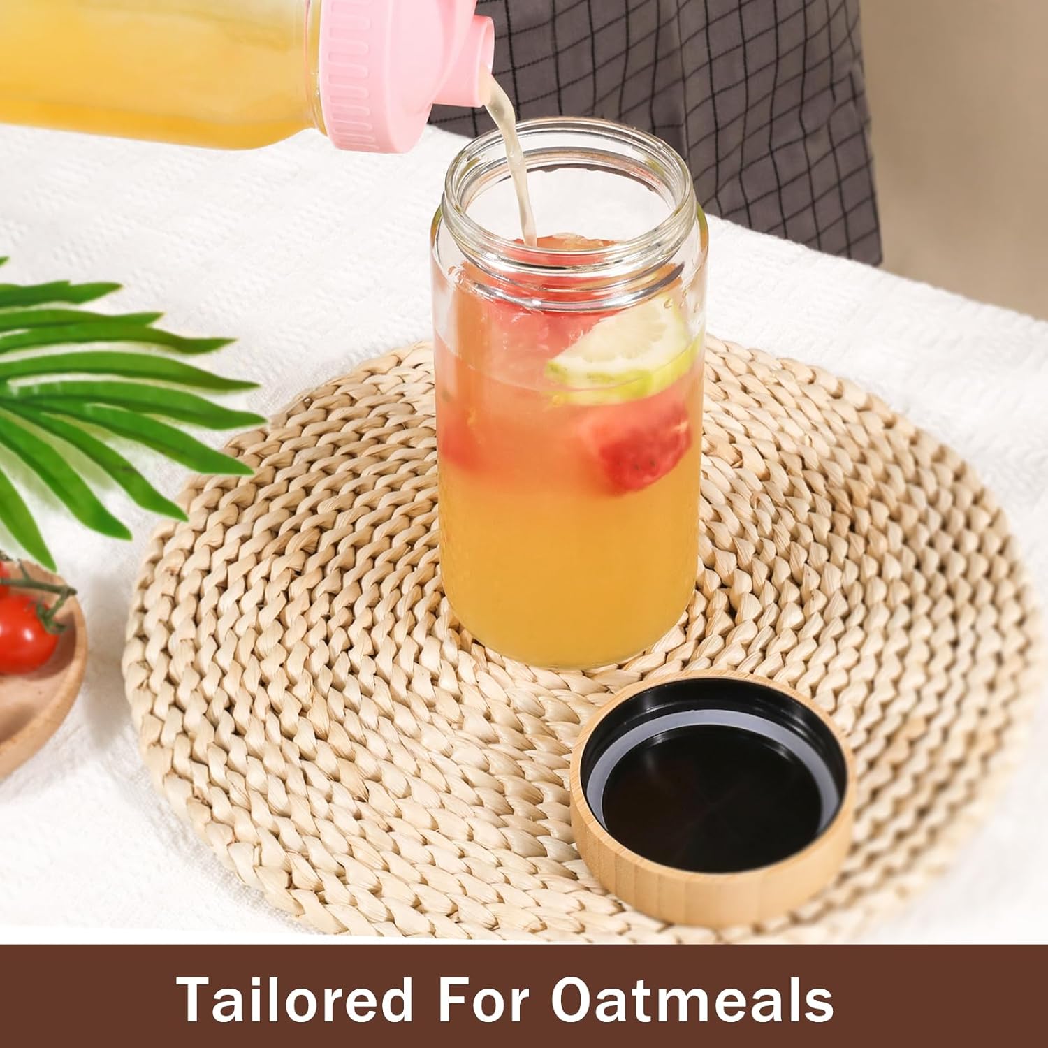OcePor 6 Pack 24oz Glass Jars with Bamboo Lids, Over Night Oats Container with Airtight Lid, Glass Snack Storage Salad Jars For Food, Yogurt, Sugar and Flour,Coffee Bean, Cookie, Cereal