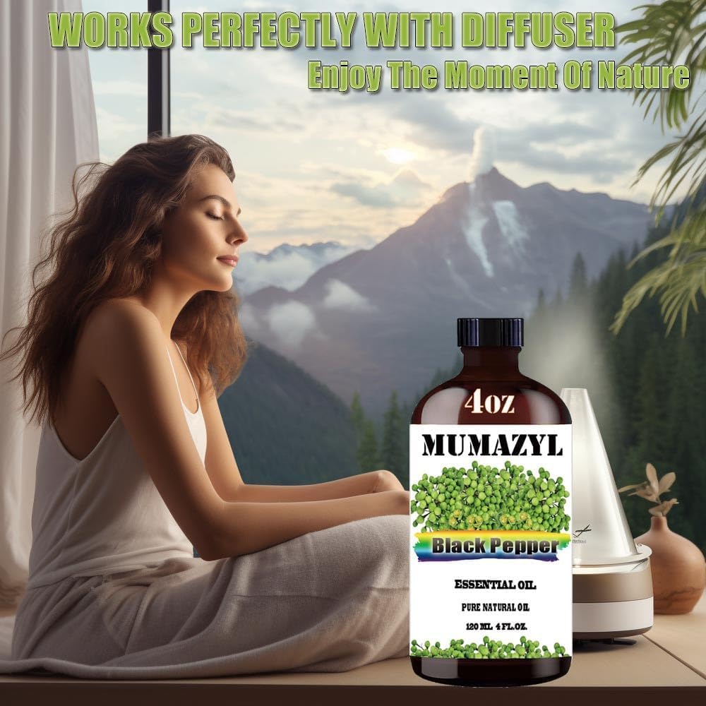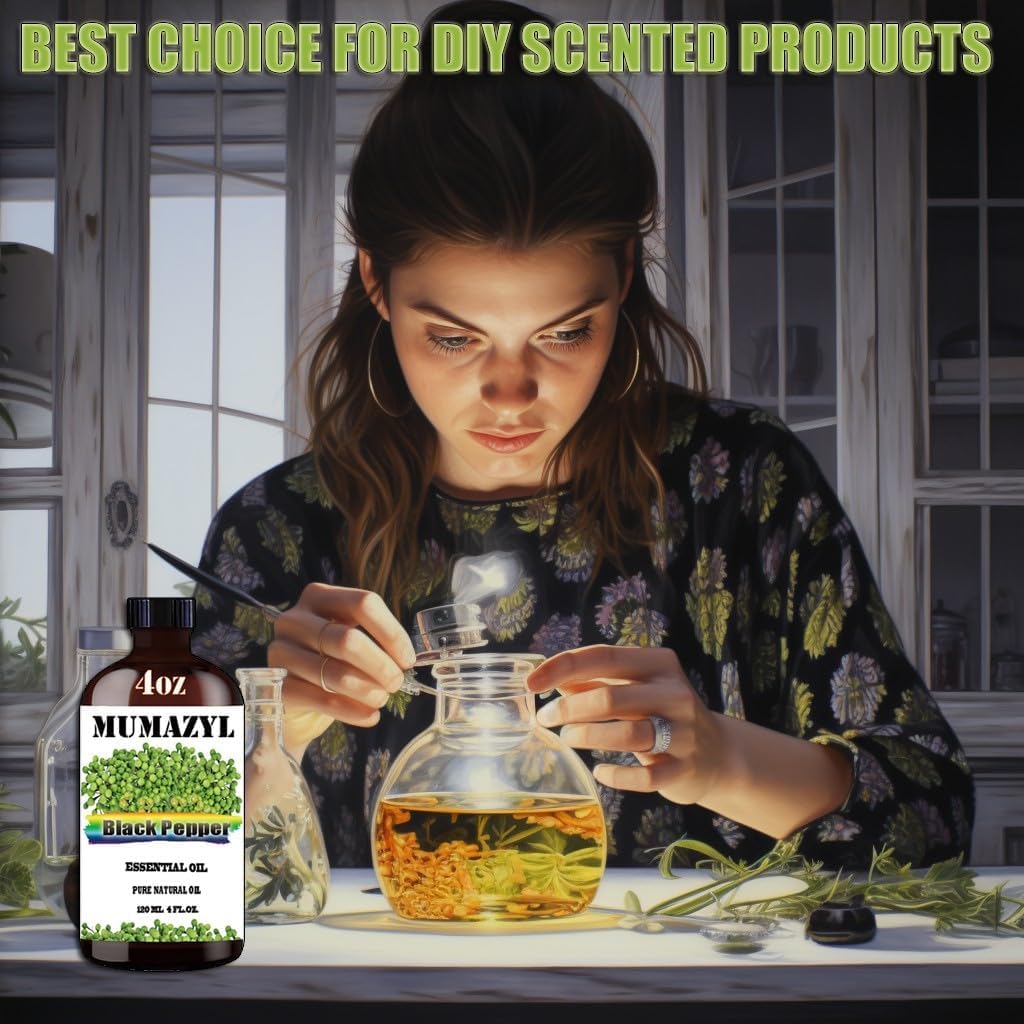 Black Pepper Essential Oil, Black Pepper Oil 4 Fl Oz 120ML for Diffuser Humidifier Yoga Cleaning DIY Candle Soap Making Essential Oils