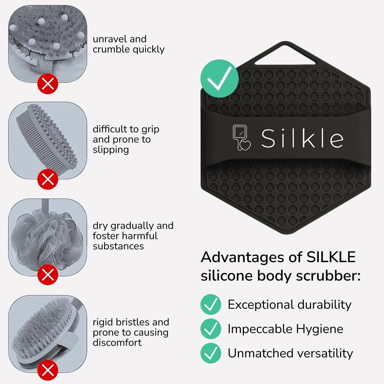 Silicone Body Scrubber - Exfoliating Bath Brush and Skin Cleanser - Shower Sponge for Gentle Body Scrub and Wash - Silicone Scrubbing Care Tool for a Refreshed and Renewed You - Black