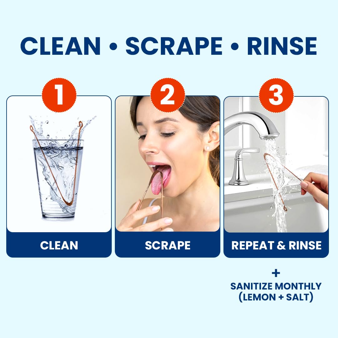 - COPPER CONSTRUCTION FOR CLEANING: Made from copper tongue scraper material, this metal tongue scraper tool offers durability compared to plastic or stainless steel tongue scraper options. The smooth, rounded edges glide gently across the tongue, removing debris and buildup. Suitable for daily oral hygiene and tongue cleaner functionality for those seeking tongue scrapers for comprehensive mouth cleaning.
