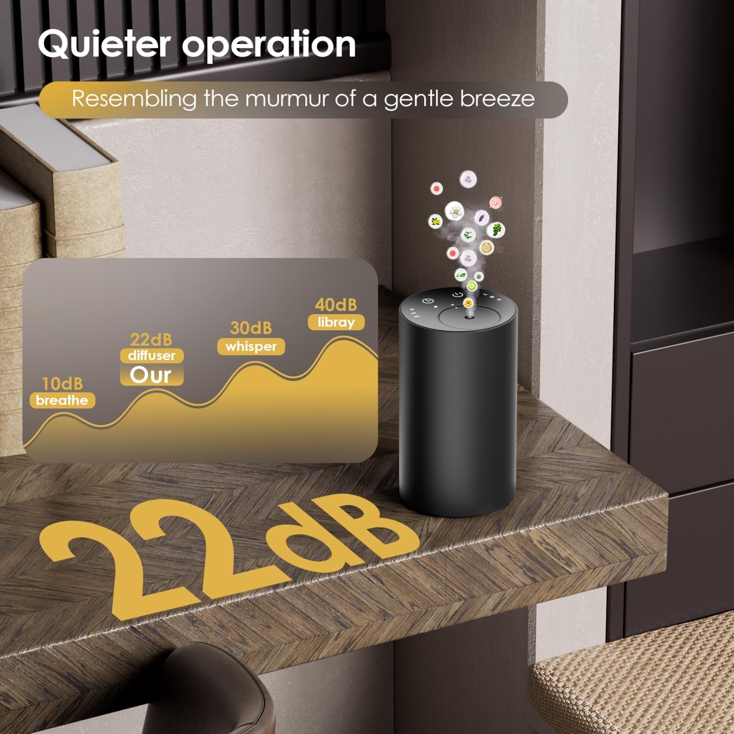 - Quiet Motor Operation: Our Essential Oils Diffusers for Home use a carbon brush motor with a unique, professional low-noise design. Operating at less than 30 dB, it is quieter than most appliances. The Diffusers for Essential Oils can quietly release the aroma of essential oils in any environment without disturbing you. It is suitable for offices, bedrooms, living rooms, and even bathrooms.