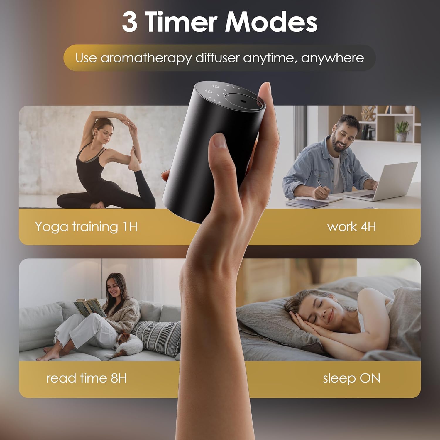 - 3 Mist Levels, 3 Timer Settings, & 2 Modes (Home/Car): The Aromatherapy Diffuser offers 3 mist levels (Low, Medium, High) that can be adjusted to suit your preferences. It also includes 3 timer settings with automatic shut-off options at 1, 4, or 8 hours. In addition, the Diffusers for Essential Oils Large Room are versatile, suitable for use both at home and in the car, helping to optimize your entire space.Note:(Essential oils are not included in the diffuser).