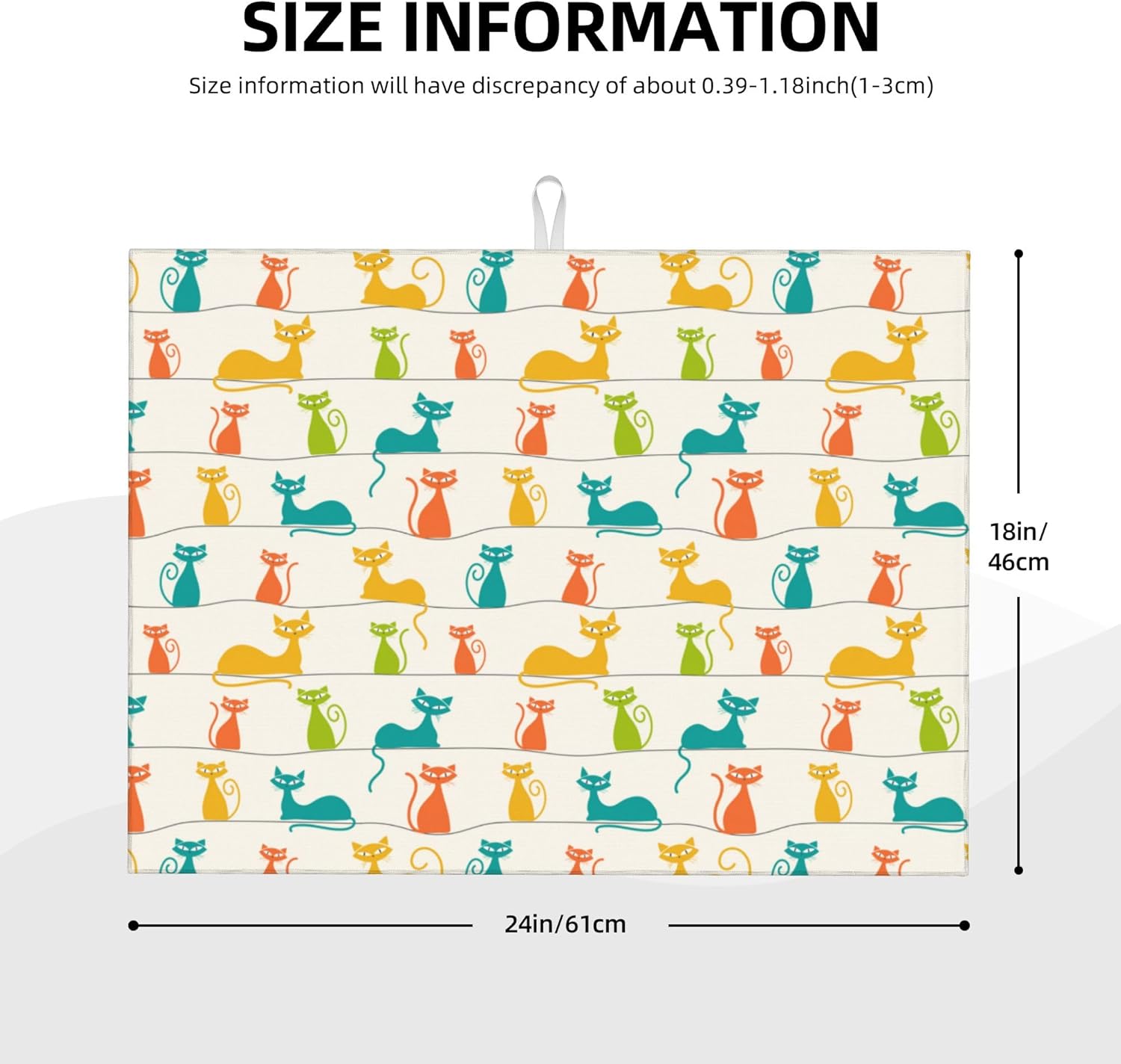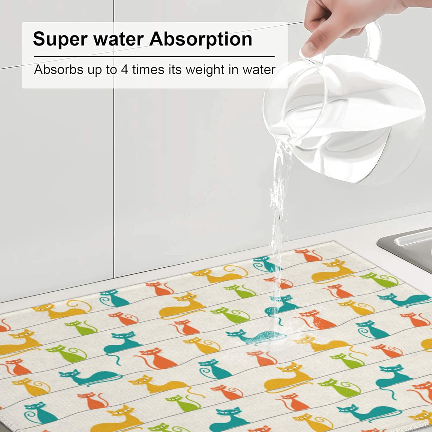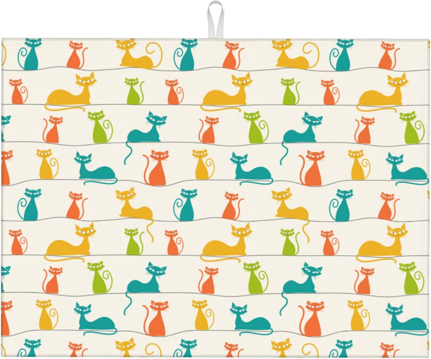 Mid Century Modern Cats Dish Drying Mat for Kitchen Counter Absorbent Reversible Cute Drying Pad Dark Kitchen Decor Dish Drainer Rack Mats 18"x24"
