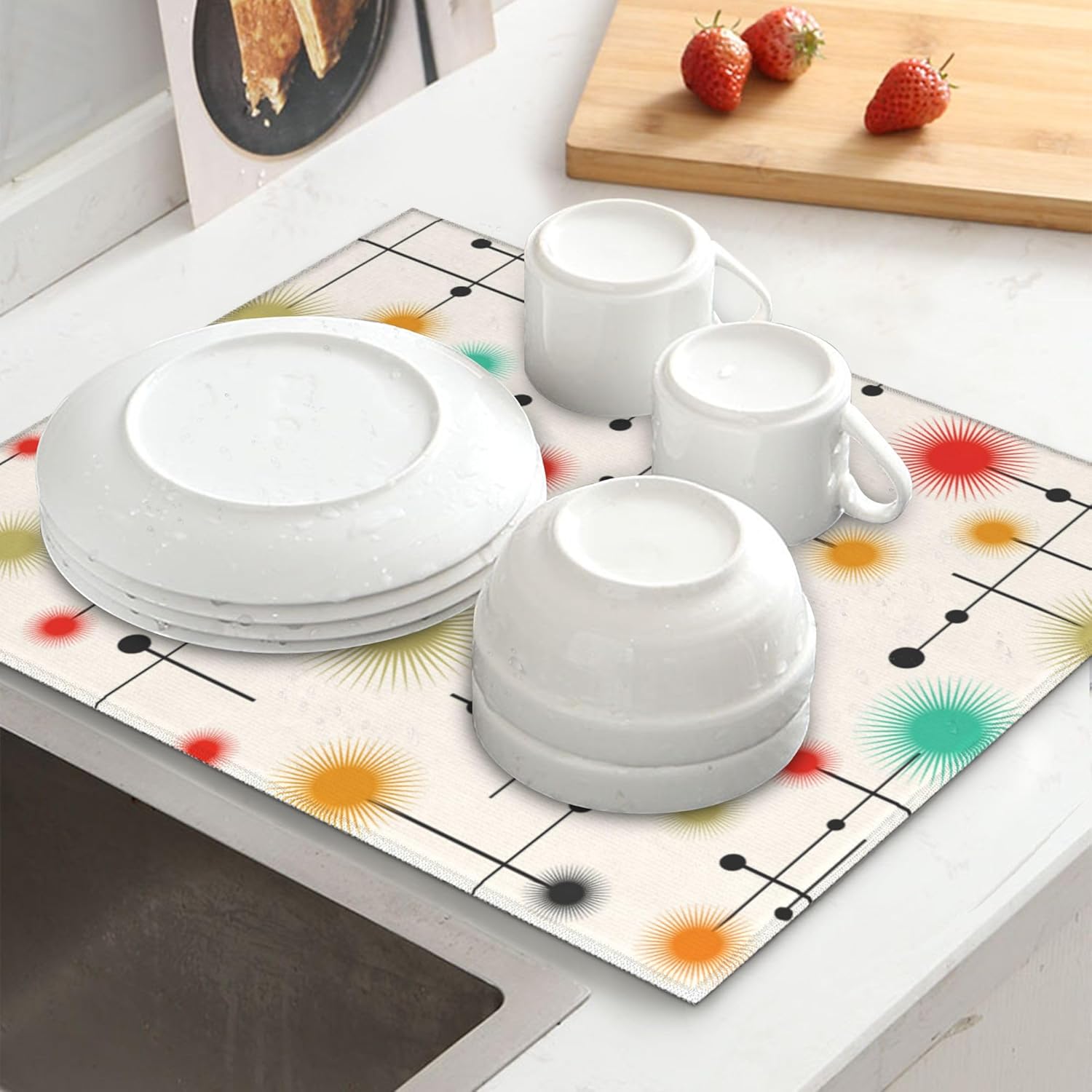 Mid Century Modern Dish Drying Mat for Kitchen Counter Yellow Washable Absorbent Reversible Microfiber Retro Drying Pad Kitchen Accessories 16x18 Inch