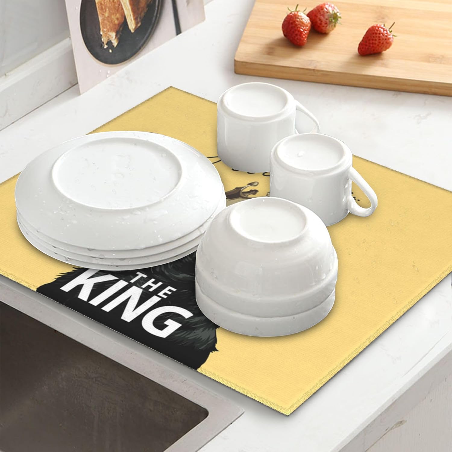 Funny Bulldog Dish Drying Mat for Kitchen Counter Washable Absorbent Reversible Microfiber Cute Dog Drying Pad Kitchen Accessories 16x18 Inch Yellow
