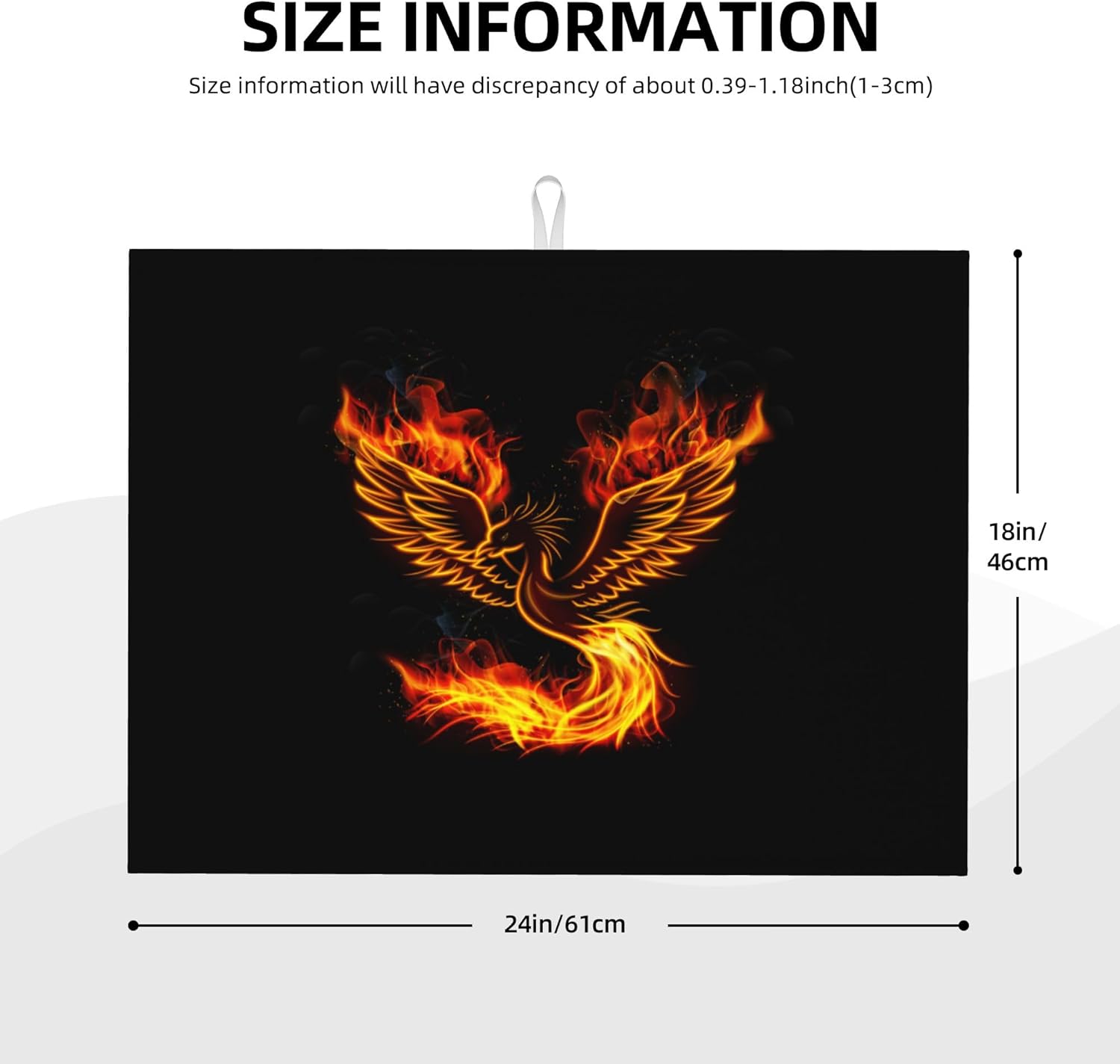 Funny Dish Drying Mat for Kitchen Counter Absorbent Reversible Fire Phoenix Drying Pad Dark Kitchen Decor Black Dish Drainer Rack Mats 18"x24"