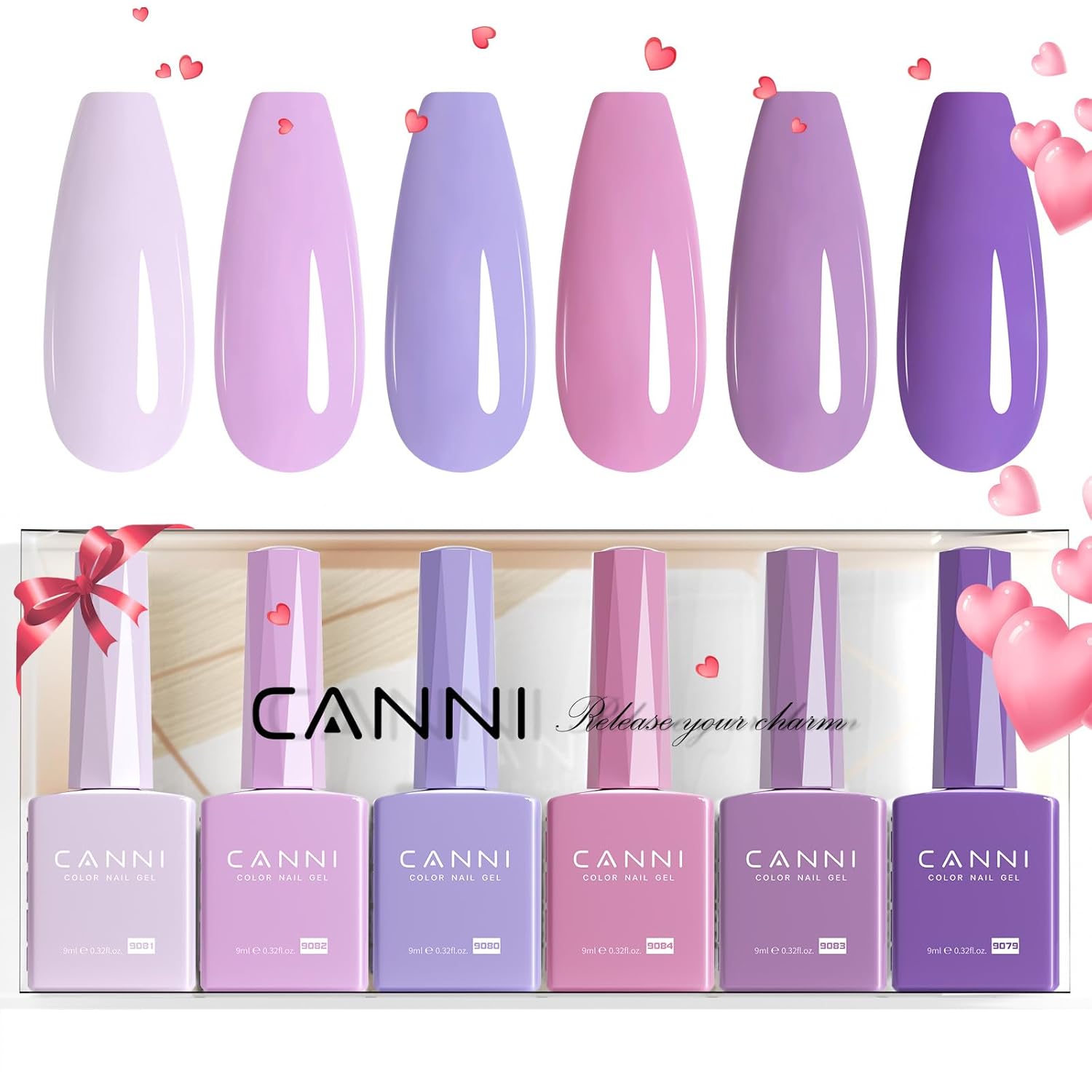 CANNI 6 Colors 9 ML Hema-Free Light Purple Gel Nail Polish Set, Purple Gel Polish Kit, Soak Off LED Nail Gel Manicure Kit DIY at Home Salon Gifts