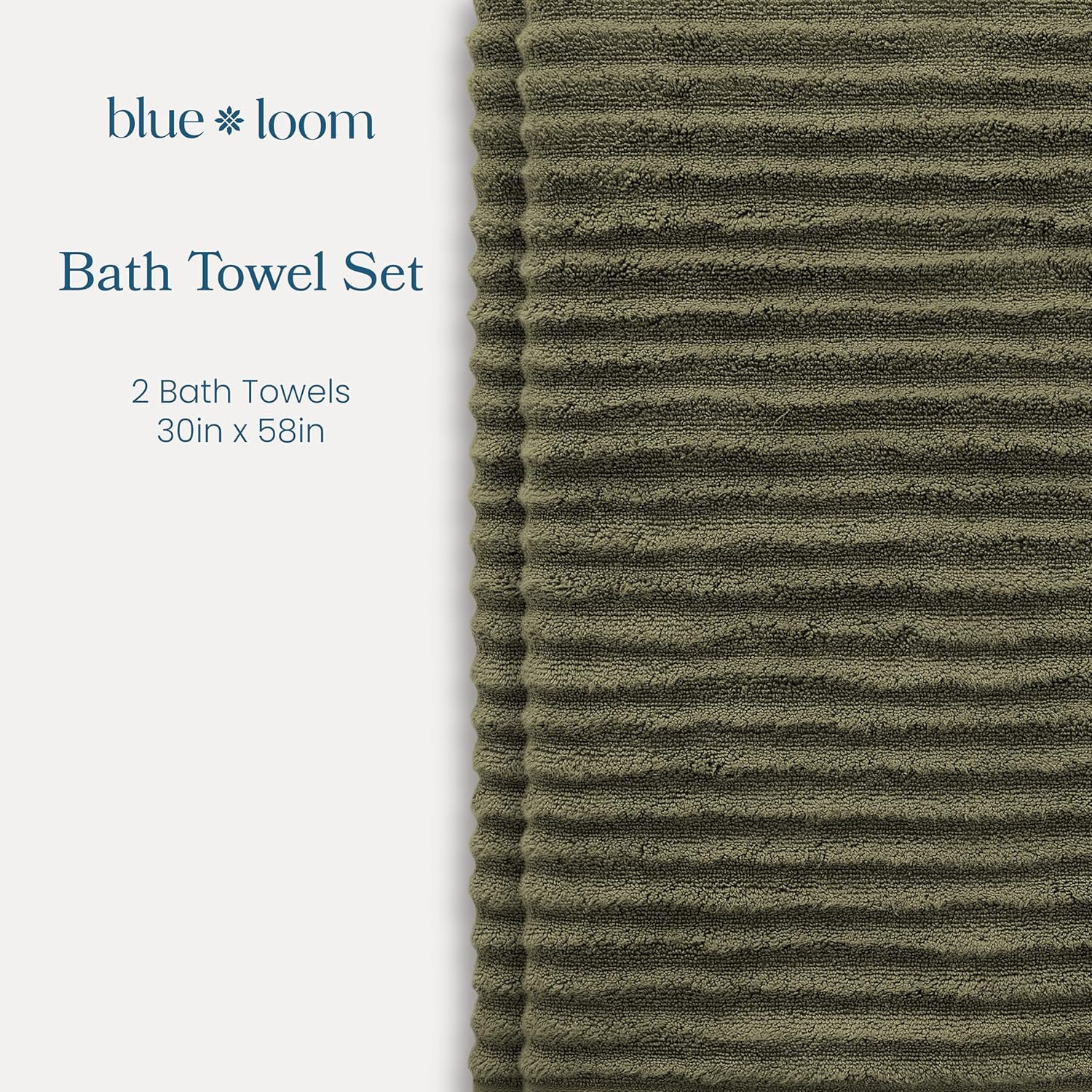 Blue Loom Ribbed Bath Towels Set, 100% Cotton 600 GSM, Soft Absorbent Durable Quick Drying 2 Bath Towels for Bathroom - Mason Set of 2 Moss Green (58" x 30" Inch)