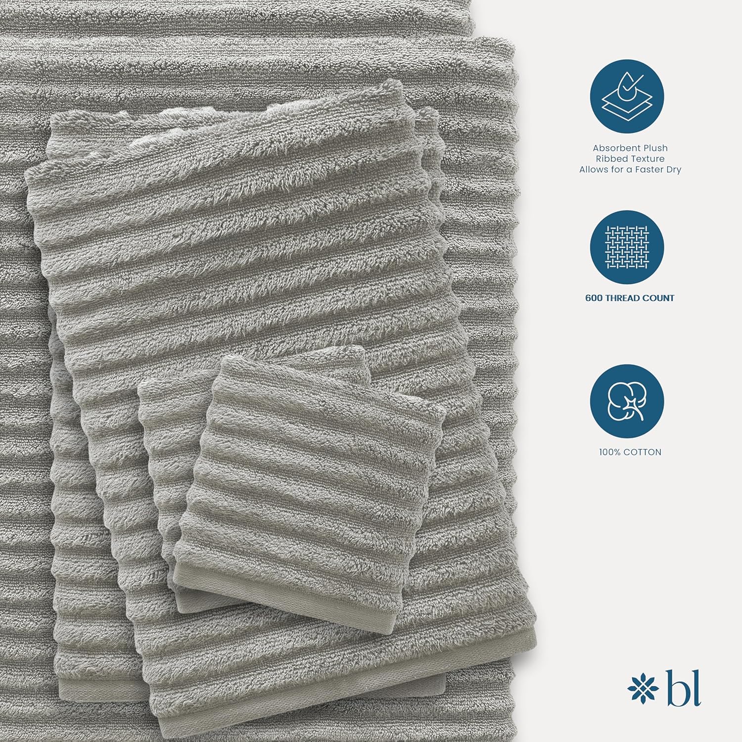 Blue Loom Ribbed Bath Sheet & Towel, 100% Cotton 600 GSM, Soft Absorbent Durable Quick Drying Bath Sheet & Bath Towel Set for Bathroom - Mason Set of 2 Stone Grey (65" x 45" & 58" x 30")
