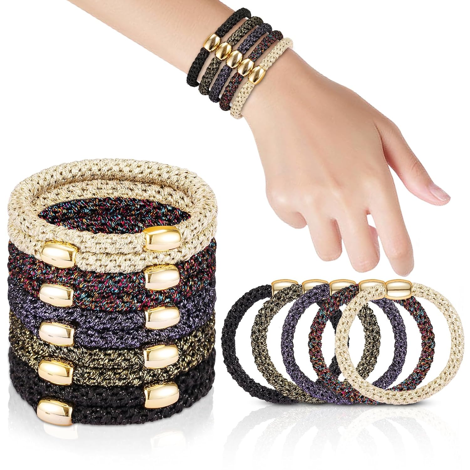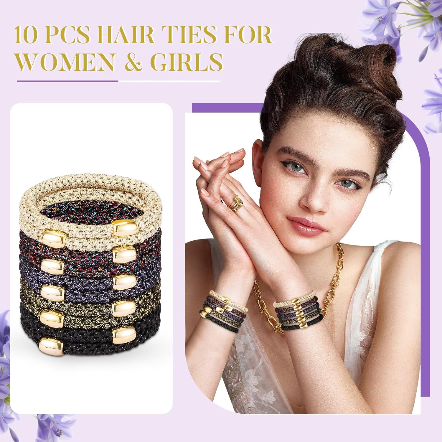 - 【Fashionable Ponytail Holders】Available in a set of 10 pony tails hair ties for women and girls with thick hair for daily use. Adorned with stylish gold decorative beads, these bands add an elegant touch, boosting your hair game with confidence.