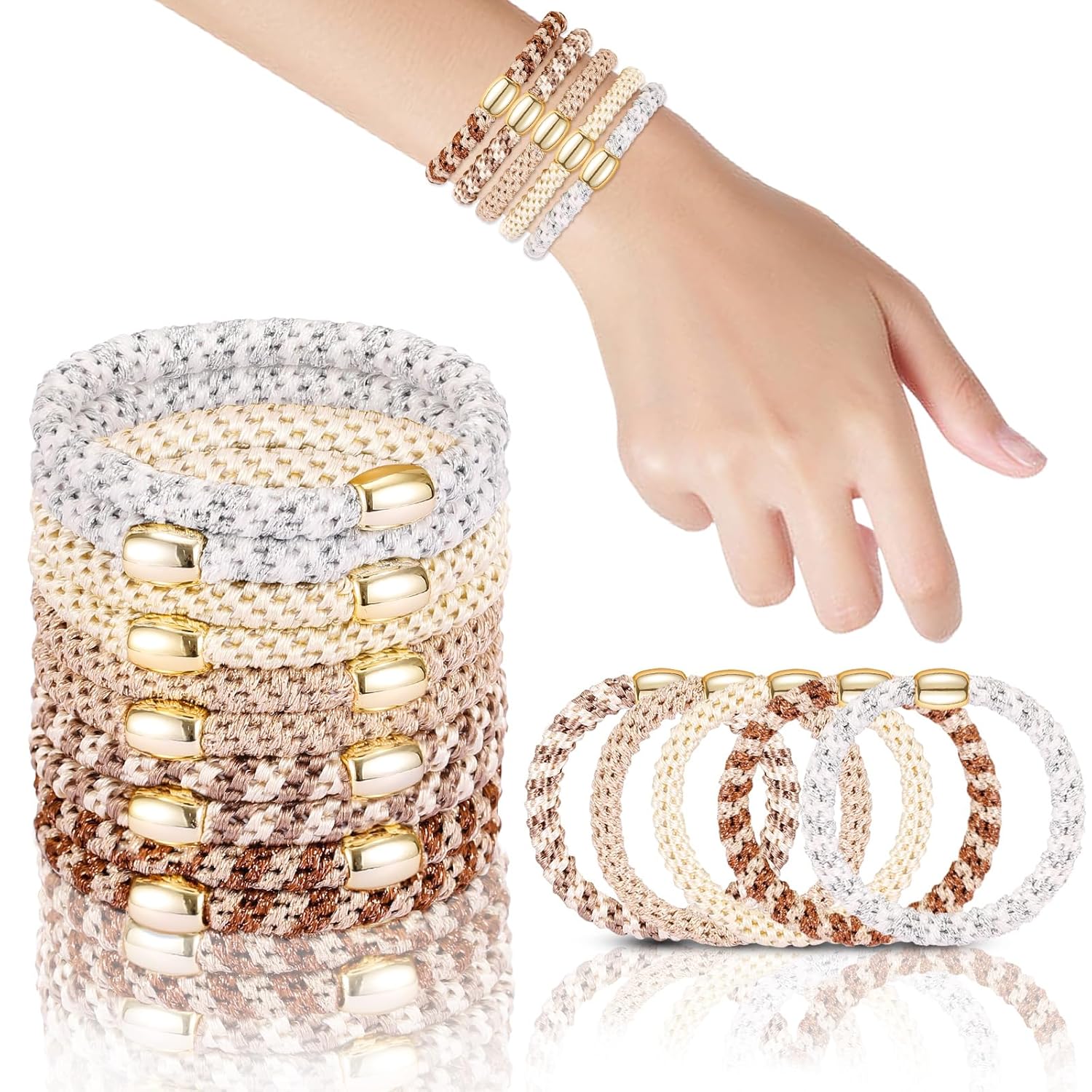 - 【Fashionable Ponytail Holders】Available in a set of 10 pony tails hair ties for women and girls with thick hair for daily use. Adorned with stylish gold decorative beads, these bands add an elegant touch, boosting your hair game with confidence.