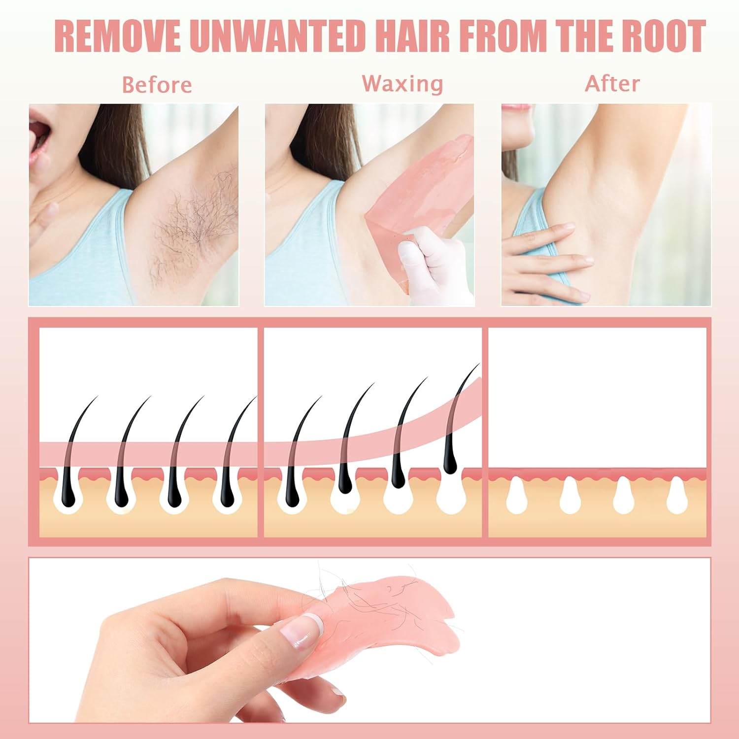 - 【Save Time & Money, Long-Lasting Results】Our brazilian wax kits are suitable for women and men for full body hair removal, including but not limited to the face, eyebrows, lips, arms, underarms, chest, bikini, and legs. Waxing hair removal extracts the hair from the root, thus slowing down the growth. Enjoy 3-6 weeks of smooth, hairless skin for a fraction of the cost.
