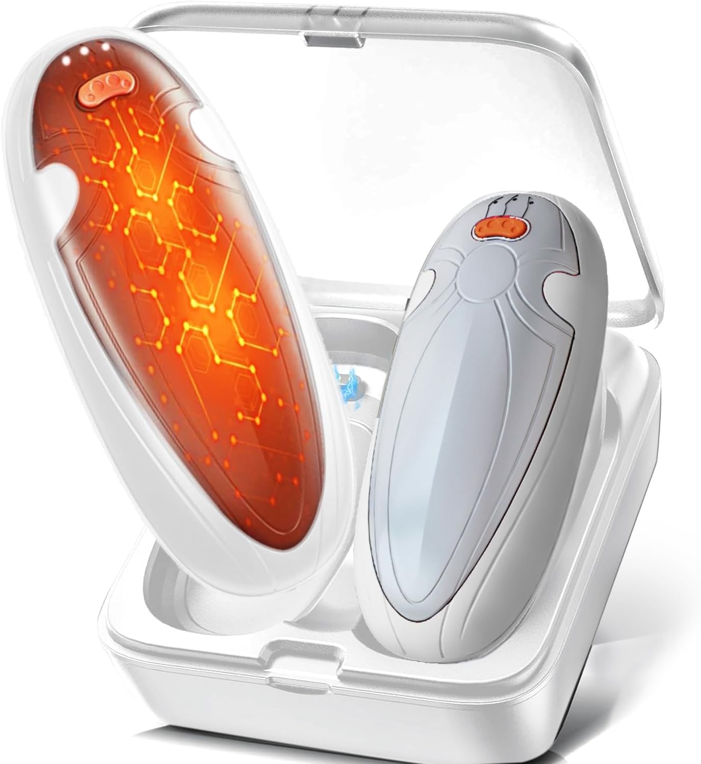 - 2-IN-1 DESIGN - A set of 2 symmetrical hand warmers that can be combined into a palm-sized hand heater, providing 360-degree warmth for your hands. Alternatively, you can use them separately, each hand holding one, The portable pocket design is suitable for travel, hunting, golf, hiking, camping, skiing, and more