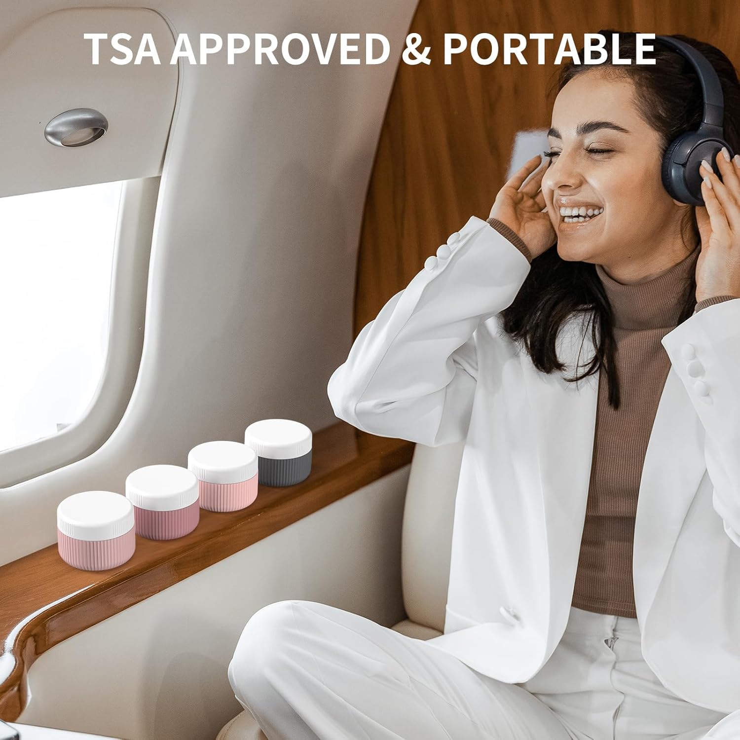 - TSA Approved Silicone Cream Jars: These 1.5 oz (45 ML) jars are TSA approved for carry-on liquids, allowing you to pass through airport security with ease; Their small size is perfect for bringing your skincare essentials without exceeding liquid limits