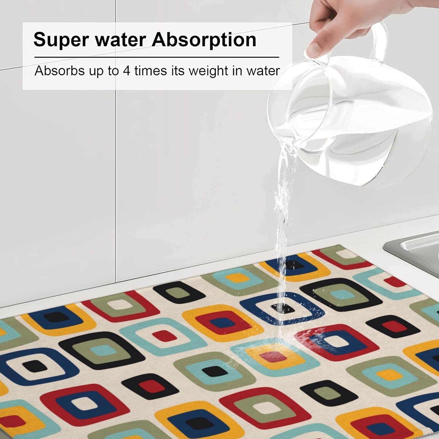 - Wash: Washable kitchen drying mat hand wash or machine wash, easy to care