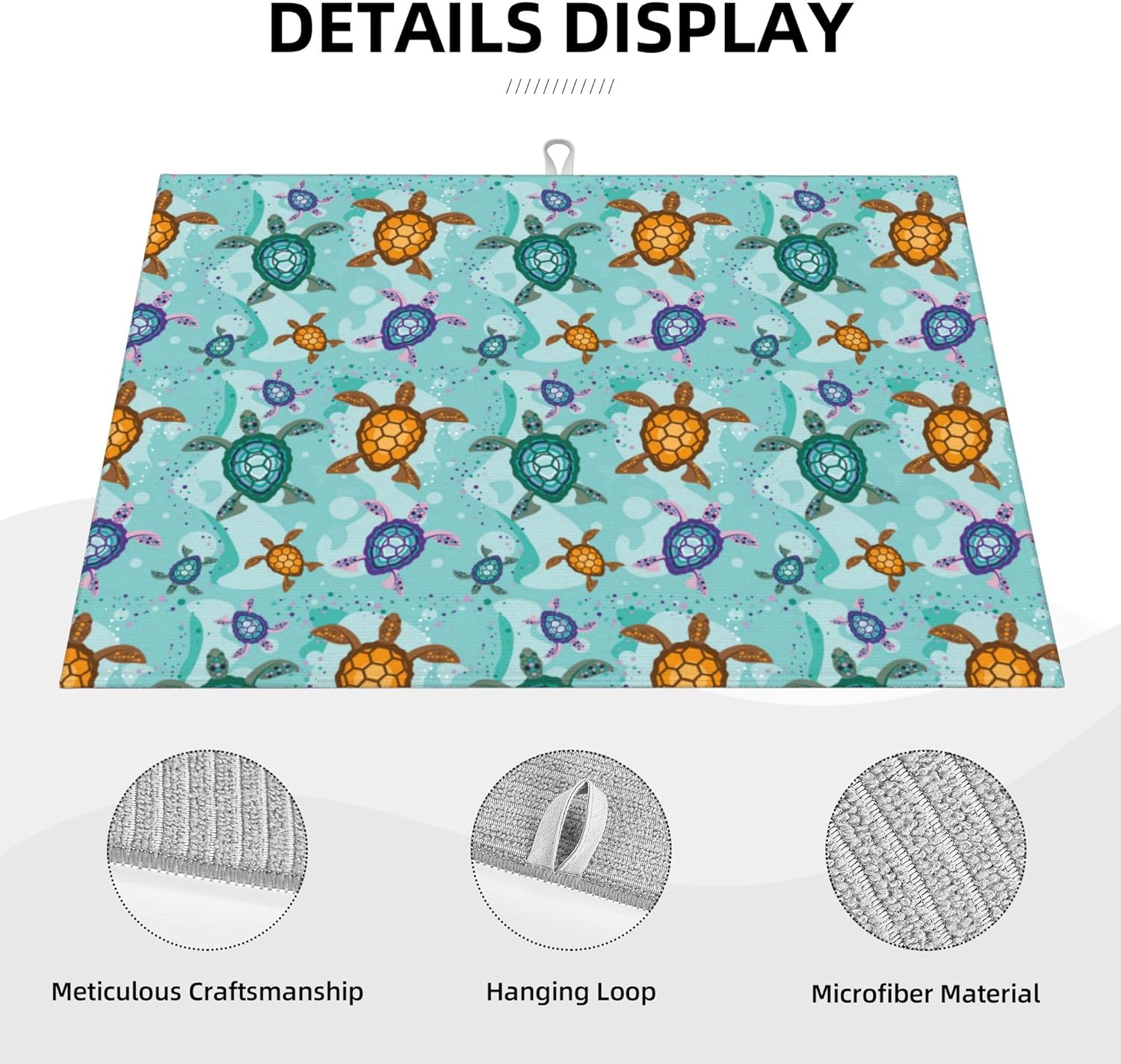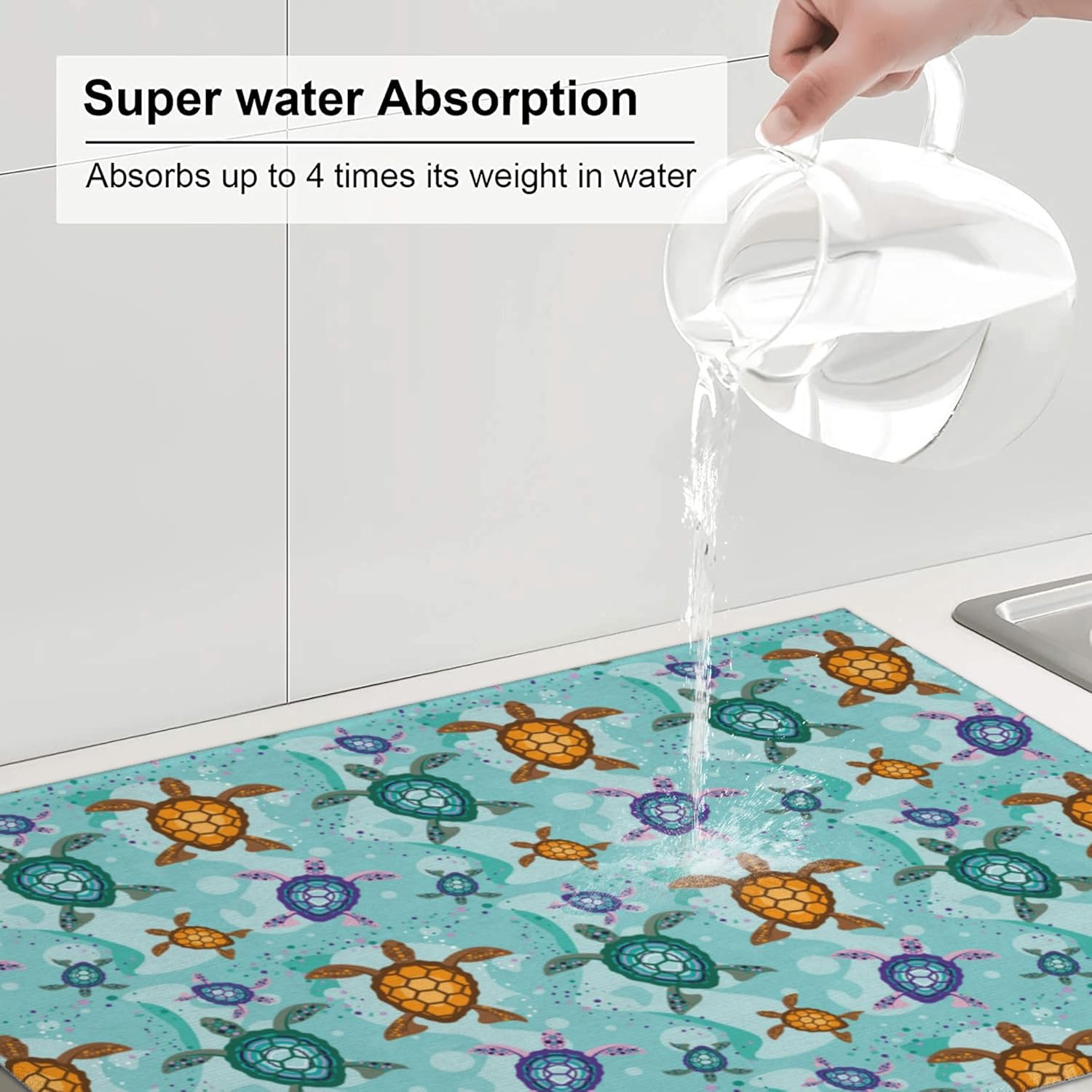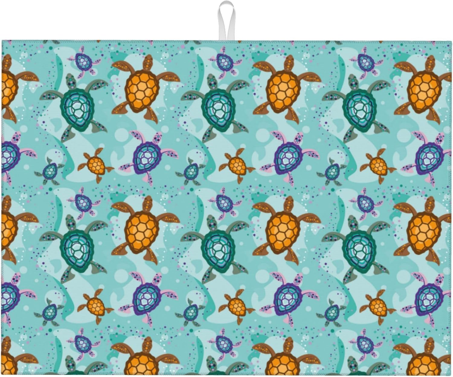 Cute Sea Turtle Beach Dish Drying Mat for Kitchen Counter Absorbent Reversible Ocean Themed Decorative Drying Pad Dark Kitchen Decor Dish Drainer Rack Mats 18"x24"