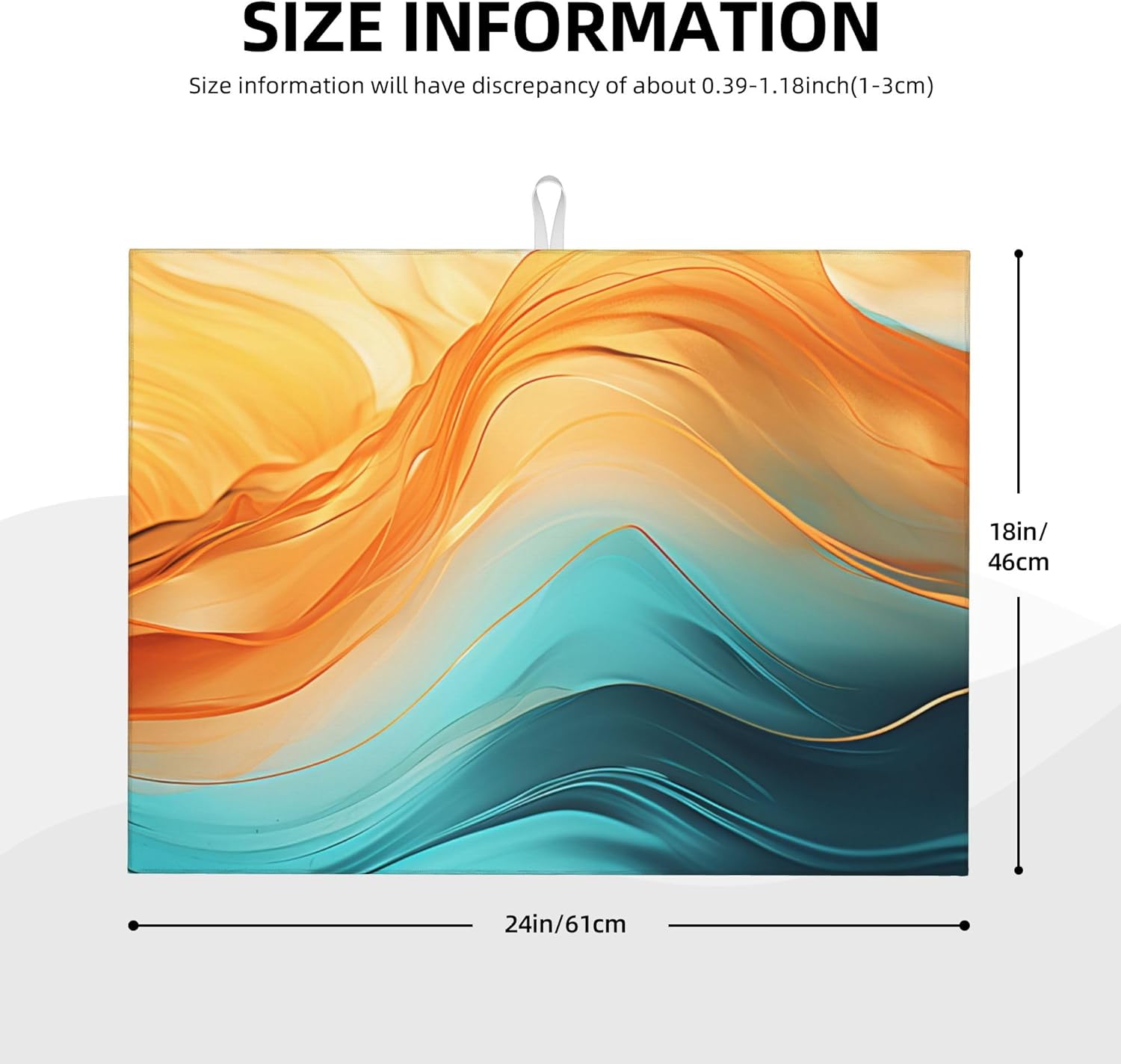 Orange Teal Marble Dish Drying Mat for Kitchen Decor Modern Dish Drainer Rack Mats Washable Absorbent Reversible Microfiber Drying Pad Kitchen Accessories 18"x24"