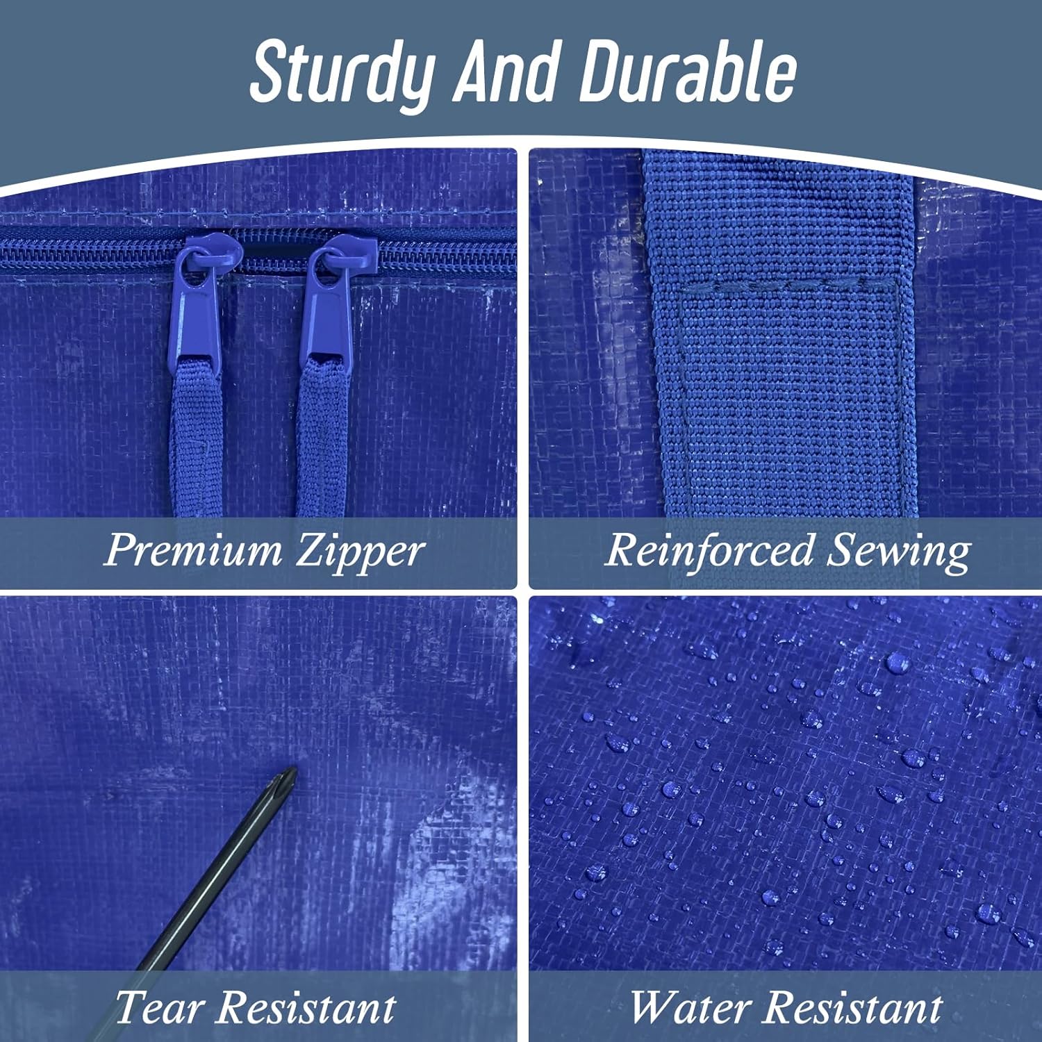 12 Pack Extra Heavy Duty Large Moving Bags with Strong Zipper & Comfortable Handles, Sturdy & Durable Clothes Storage Bags Totes Bins, Packing Moving Boxes for College Supplies, Blue