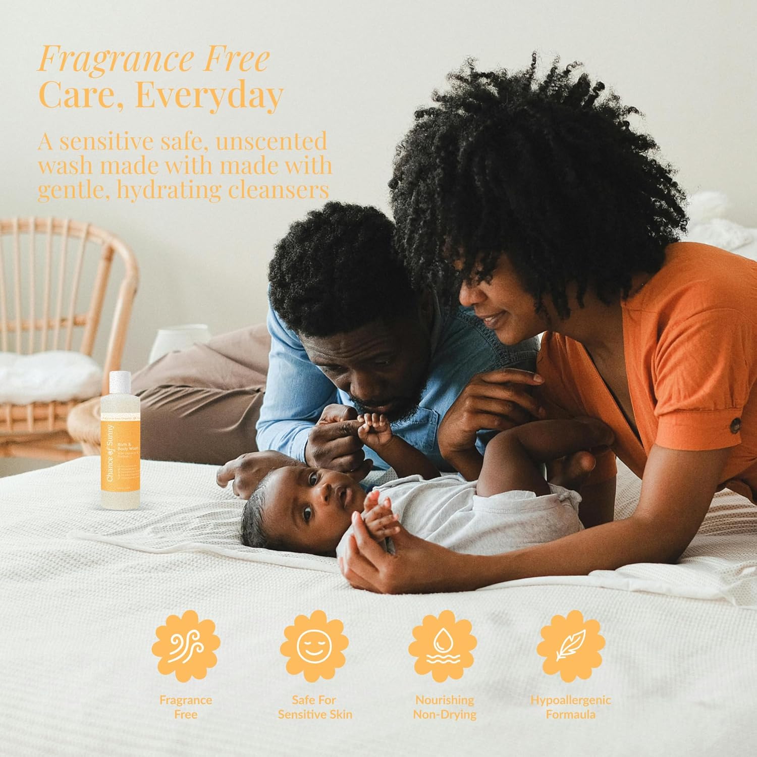 - Pediatrician Approved for Sensitive Skin: Chance of Sunny Fragrance-Free Head to Toe Body Wash is gentle enough for newborns and trusted by parents. Safe for you and your baby’s sensitive skin and hair, it cleanses thoroughly without causing dryness or irritation, leaving skin feeling soft, clean, and balanced.