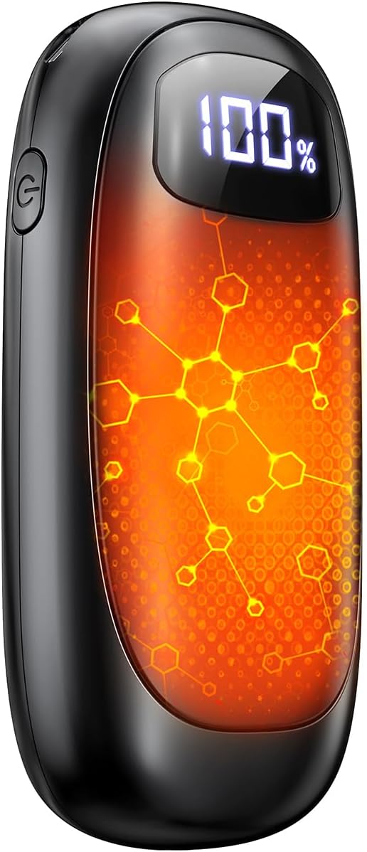 - 【 Dual-Sided Heating Hand Warmers】This is a SINGLE UNIT! JMOSTRG rechargeable hand warmers deliver double-sided heating that warms from palm to fingertips—no more single-sided warmers that leave half your hand freezing. Built-in LED display lets you check battery life and heat settings at a glance—no more guessing if it’ll last through your early-morning golf round or all-day hunting trip. These electric hand warmers are a game-changer for cold hands, perfect for those with Raynaud's syndrome