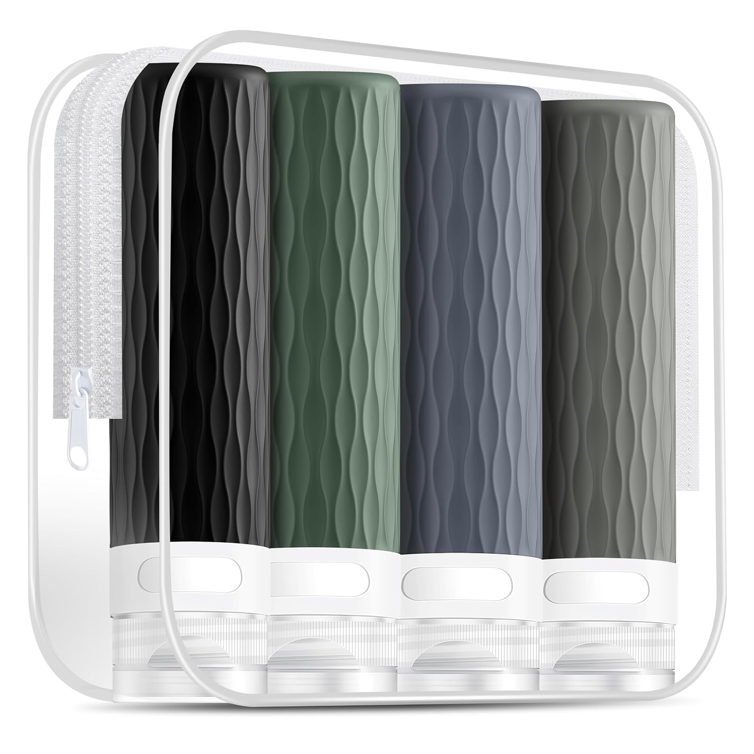 Travel Bottles for Toiletries, TSA Approved 3.4oz Travel Size Containers, BPA Free Leak Proof Silicone Traveling Bottles, Refillable Travel Essentials Kits for Shampoo Conditioner(4 Pack)-A