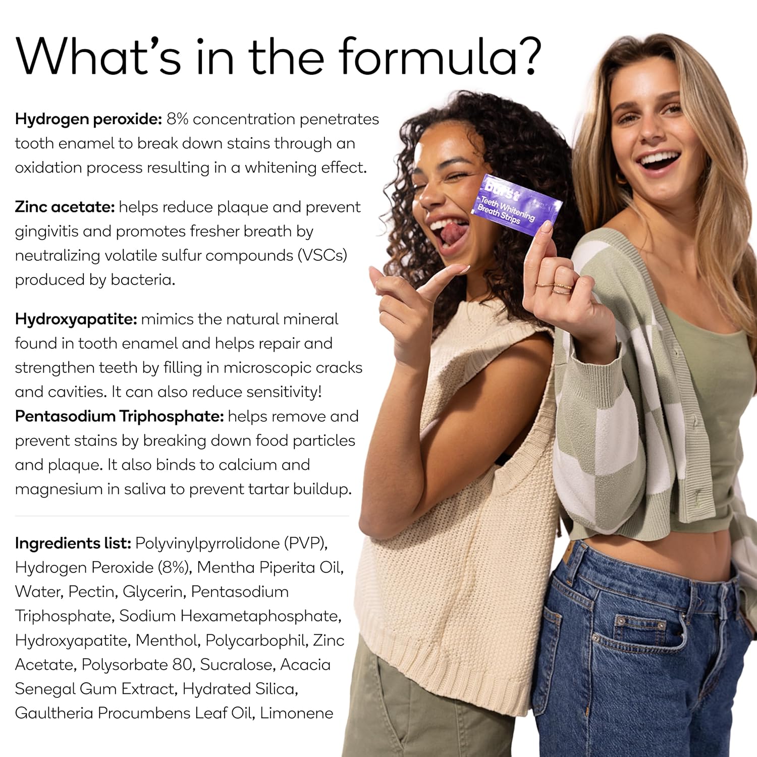 - π ππ‘πππ¨πππ¬ π πππ: Our Teeth Whitening Breath Strips have a clean formula with impactful results. They are vegan, cruelty-free and have no parabens, phthalates, SLS, or artificial flavors β just effective, enamel-safe ingredients that donβt leave a chemically aftertaste.