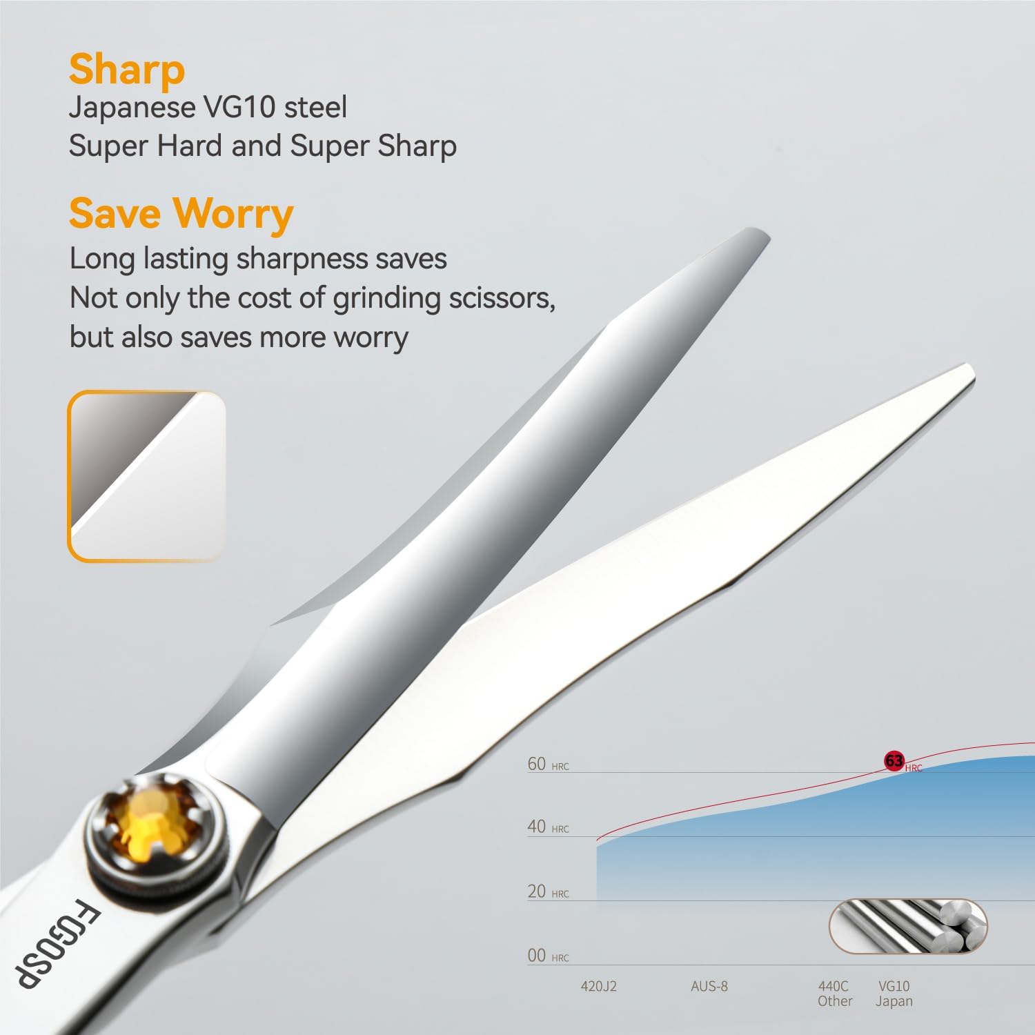 - Ultra-Gentle Cutting Feel: FOGOSP high-end barber scissors, the opening and closing resistance is very low, hand cutting hair light, soft and smooth, extremely sharp, easy cutting. High-quality scissors, so that you love to enjoy every moment of life.