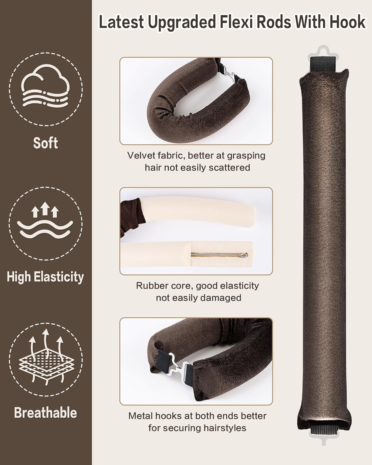 • Designed For Comfort: Overnight rods blowout are enveloped in plush, luxurious satin velvet ensuring a soft touch against your hair.Its flexible design eliminates the need for pins and clips, and its innovative hook system ensures it stays put, whether you're sleep-in or wearing it throughout the day