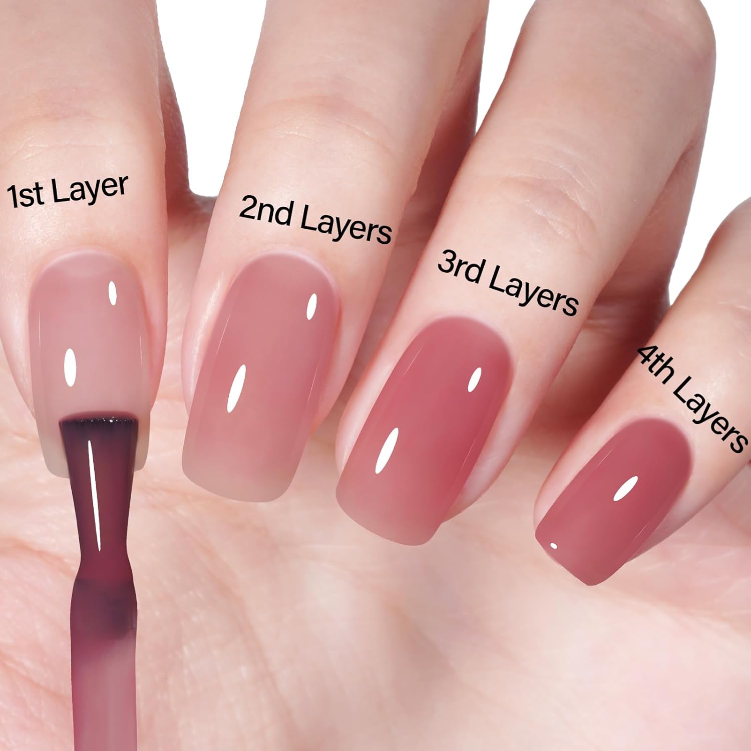 - Jelly Feeling Nude Gel Nail Polish: AILLSA pink gel polish has a semi-transparent color, you can adjust the depth of the color according to your preference, the more layers you apply the deeper the color becomes and goes from sheer to opaque. *The color of the gel nail polish will also vary slightly depending on the of the nail bed color.