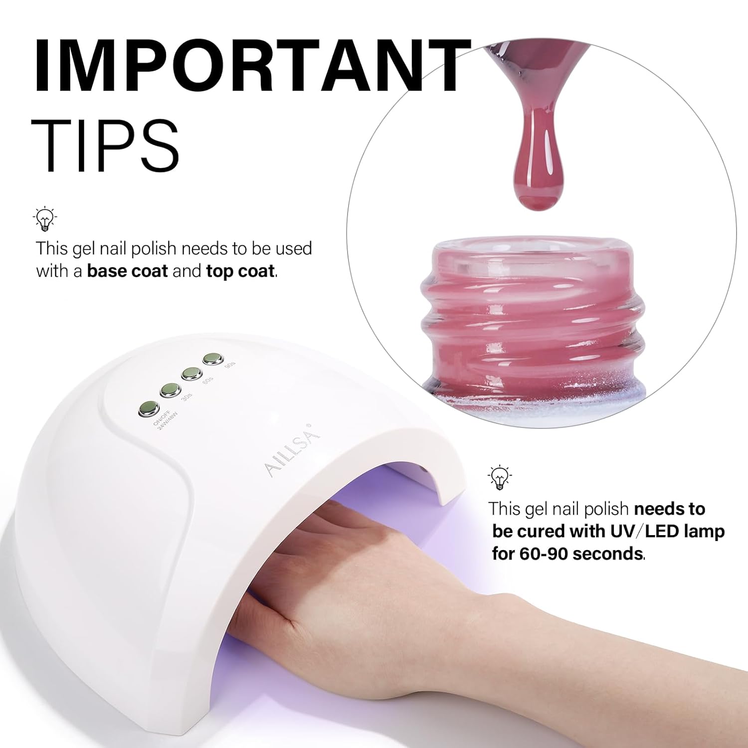 - Long Lasting 21+ Days: AILLSA translucent gel polish needs to be used with base coat and top coat, and depending the type of top coat, you can get a glossy or matte nails. With the correct application process, the gel nail polish will last over 21+ days. *Using a high quality base coat will make this manicure last longer.