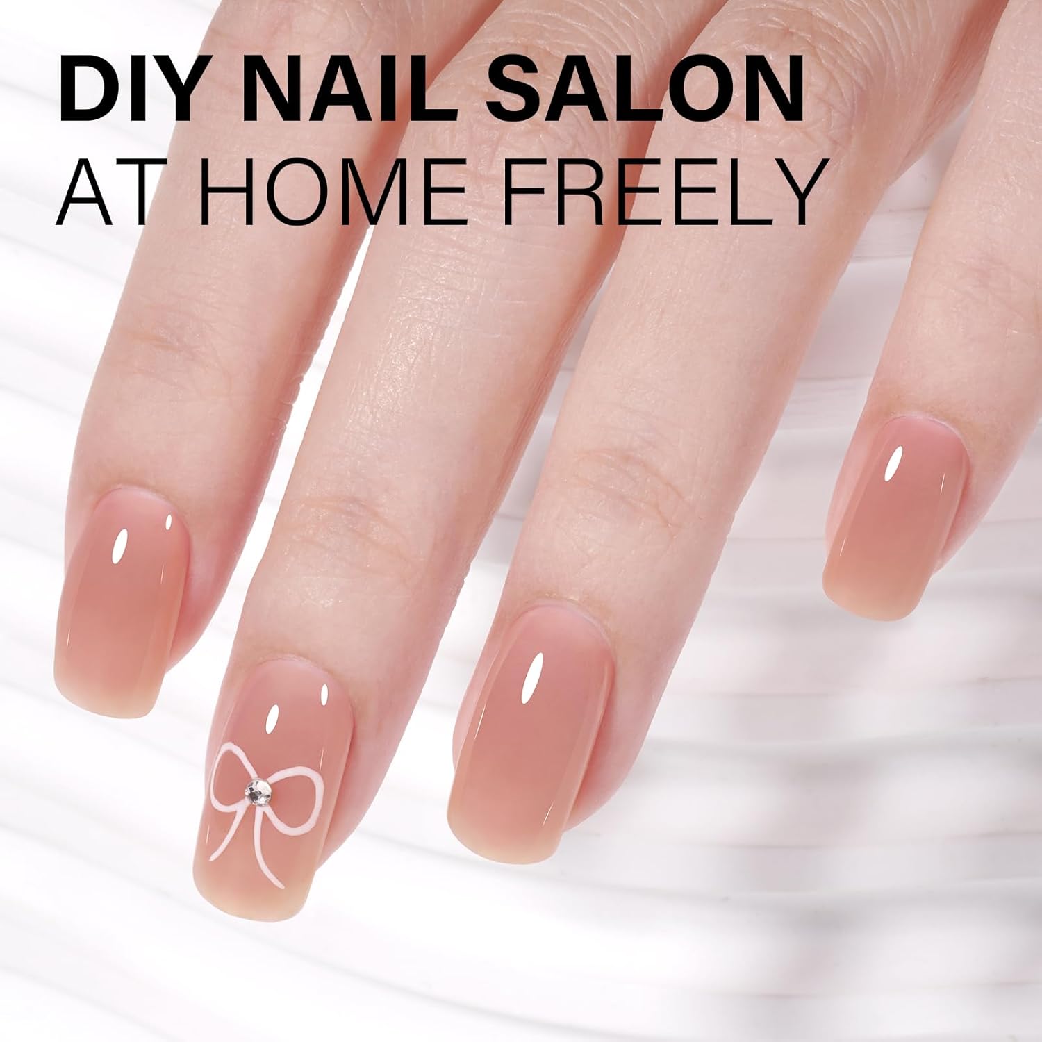 - Time Saving Home Nail Salon:If you want to save more time and money, we recommend you to use this sheer nude gel polish at home with glitter nail polish, liner gel polish, rhinestones and so on to create a french manicure for yourself. For special holidays and birthdays, you can give it to your friends or family members, let them enjoy the fun of nail salon at home and create great times and memories.