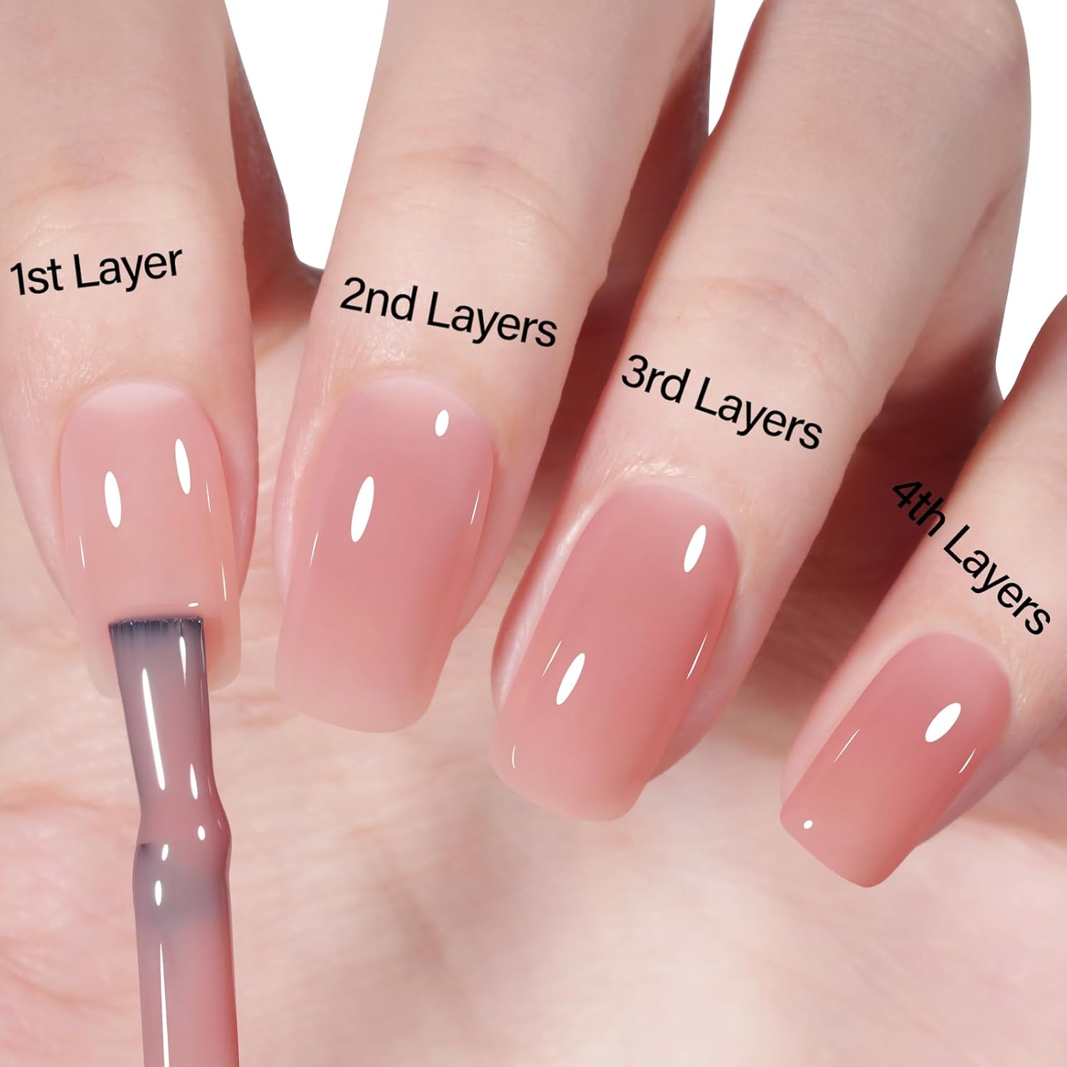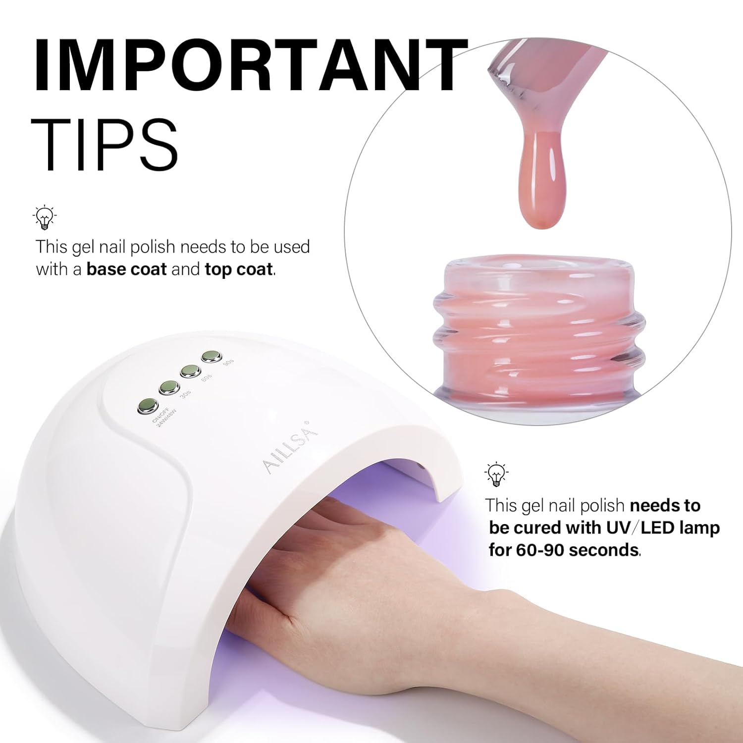 - Jelly Feeling Nude Gel Nail Polish: AILLSA nude gel polish has a semi-transparent color, you can adjust the depth of the color according to your preference, the more layers you apply the deeper the color becomes and goes from sheer to opaque. *The color of the gel nail polish will also vary slightly depending on the of the nail bed color.