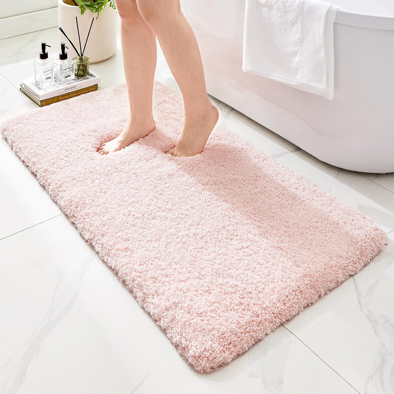 - Luxurious Touch and Aesthetic Design:this high plush bathroom rugs features 1.8-inch fluffy pile that feels so soft and delicate,providing an ultimate comfortable experience.its elegant design and rich color options (such as pink,white, blue, gray) can easily blend into various home styles,adding a touch of luxury and fashion to your bathroom