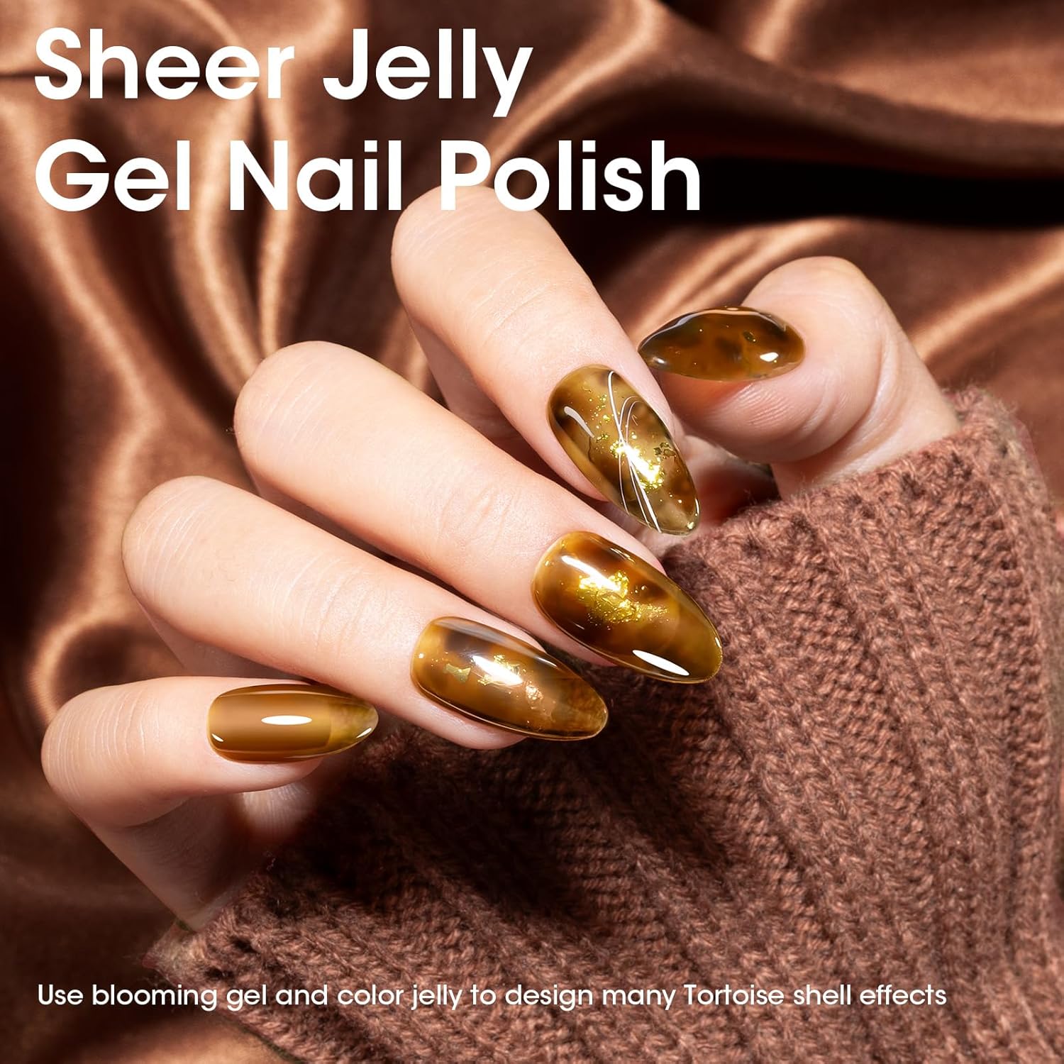 GELLEN Jelly Gel Nail Polish, Sheer Glass Neon Gel Polish Set 6 Colors Purple Blue Red Gray Brown Green, No Wipe Soak Off Glossy UV Light for Women Girls Spring Summer Fall Winter Christmas