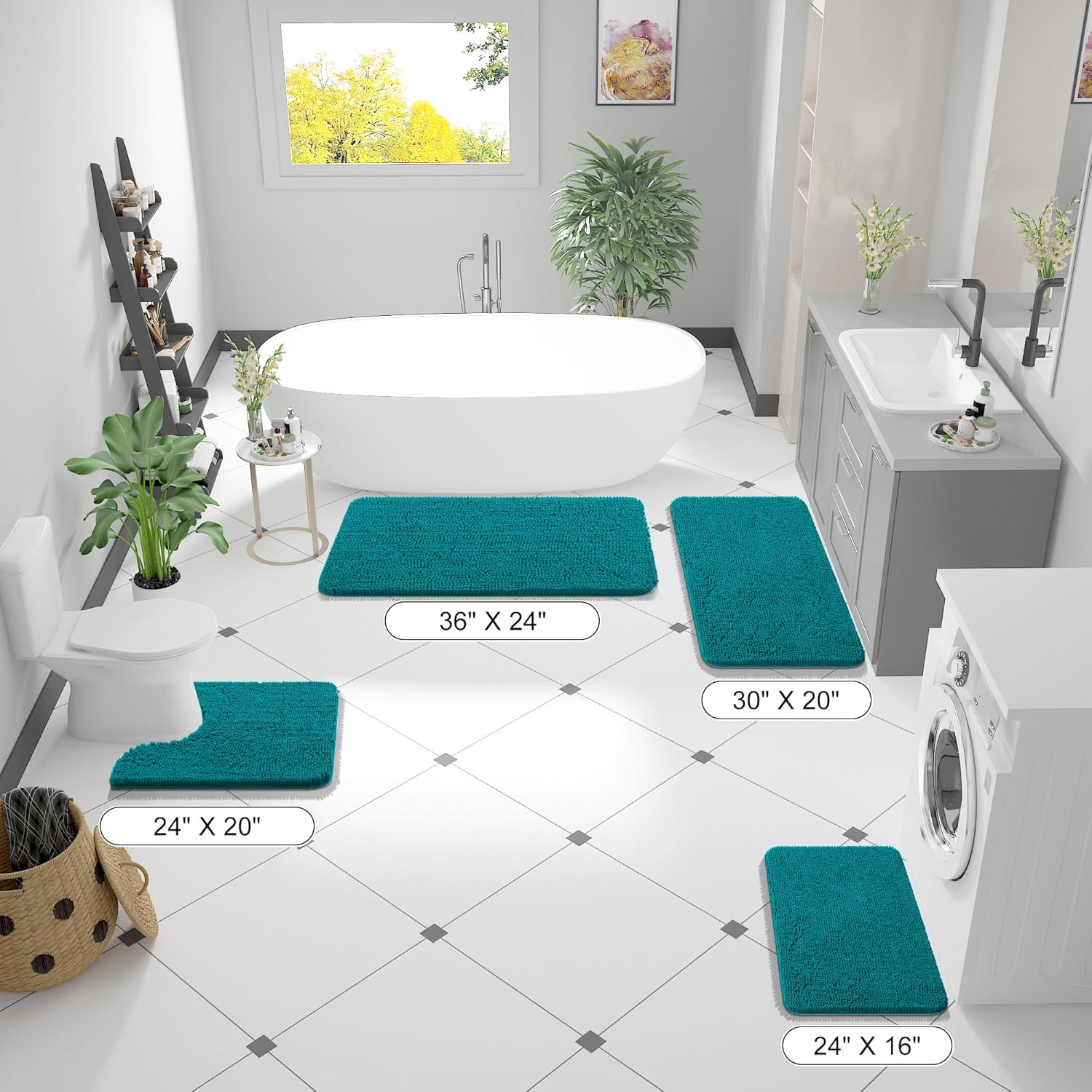 OLANLY Bathroom Rugs 44x24, Extra Soft Absorbent Chenille Bath Rugs, Rubber Backing Quick Dry, Machine Washable Bath Mats for Bathroom Floor, Tub and Shower, Home Decor Accessories, Deep Lake