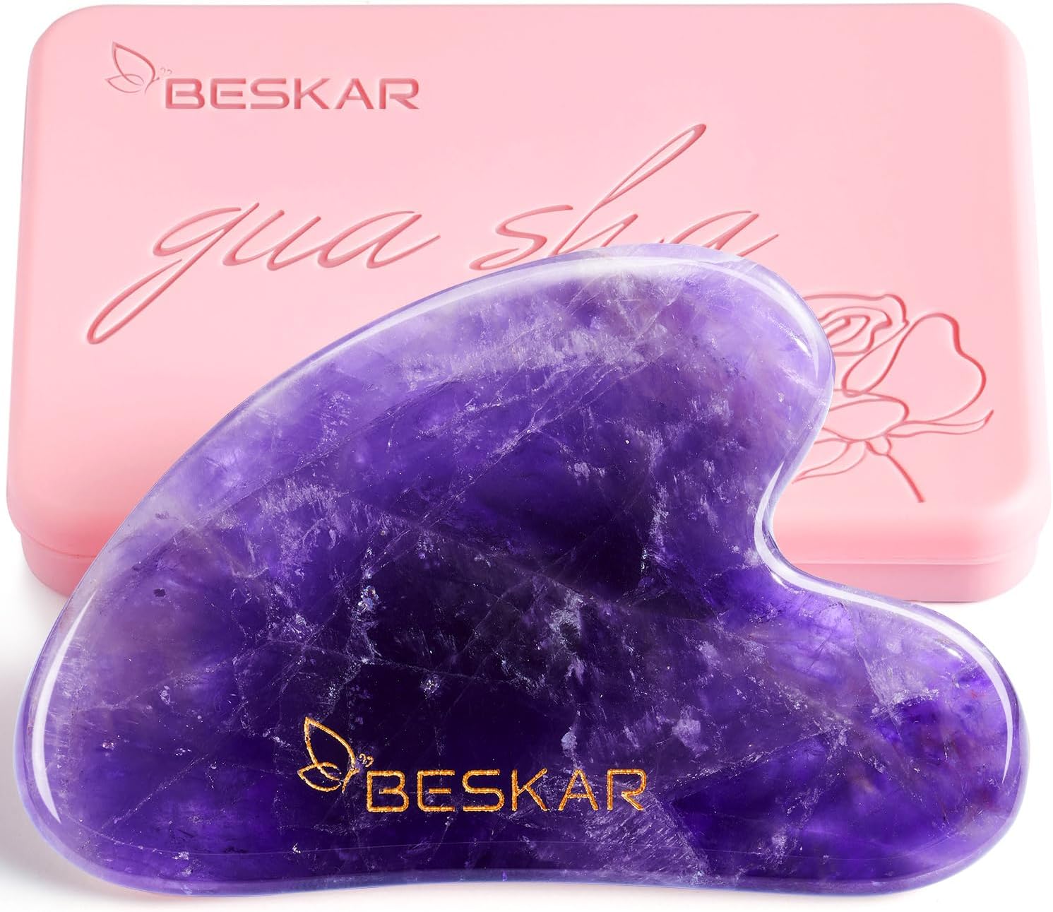 - Excellent Materials: This gua sha massager is handcrafted from 100% naturally Amethyst from South Africa. Amethyst belongs to monocrystalline quartz, which has uneven color distribution and irregular sheet-like shape, usually with a natural ice cracks. It contains trace amounts of Fe element, which can efficiently release negative ions and promote blood circulation, perfect for gua sha massage