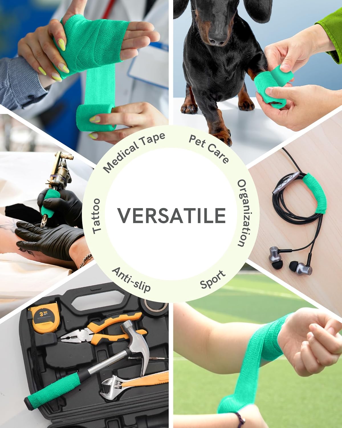 FriCARE Self Adhesive Bandage Wrap, Medical Tape in First Aid Kit, Cohesive Bandages for Wounds Sport Vet, 2 Inches X 5 Yards 6 Rolls, Teal