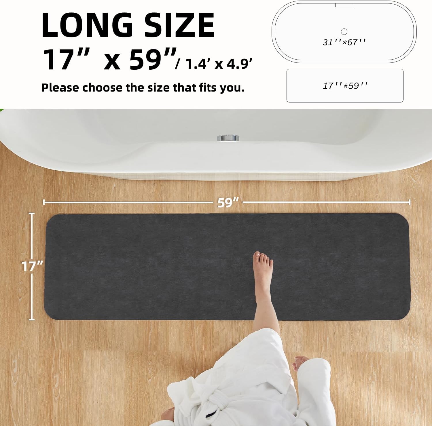 Bath Mat, Bathroom Rugs Non Slip Washable Thin Absorbent Quick Dry Bath Mat Fits Under Door Bathroom Floor Mat Perfect for Bath, Shower, or Sink 17"x59" Dark Grey