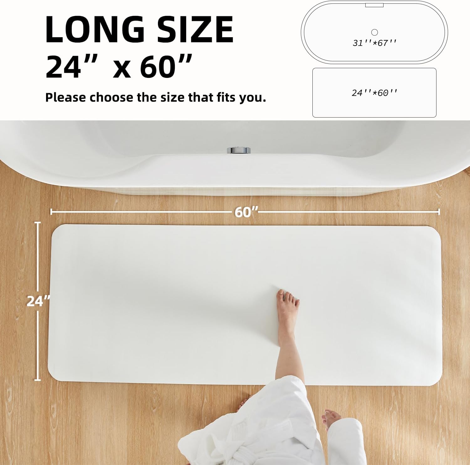 White Bath Mat, Bathroom Rugs Non Slip Washable Thin Absorbent Quick Dry Bath Mat Fits Under Door Bathroom Floor Mat Perfect for Bath, Shower, or Sink 24"x60" White