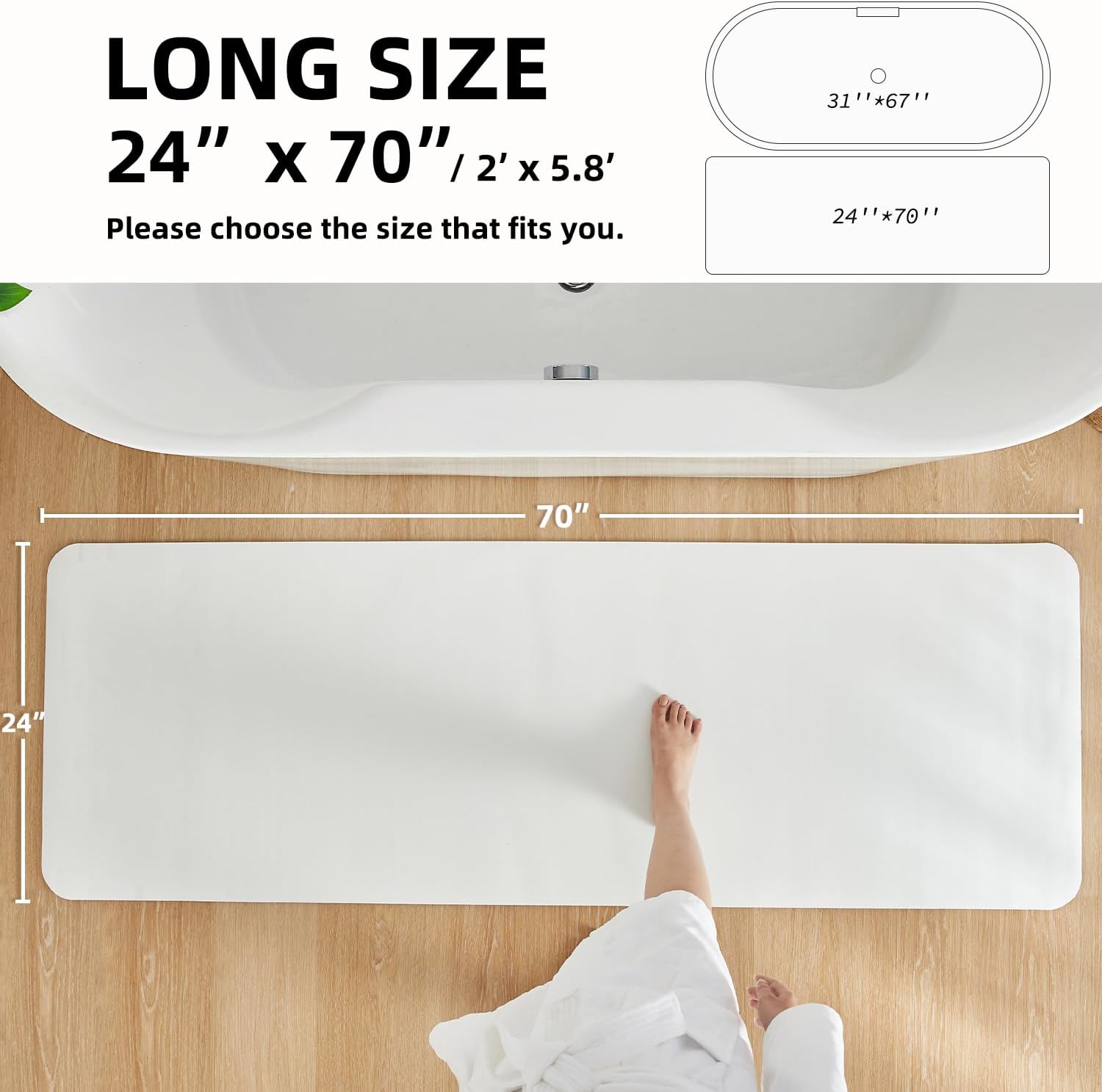 White Bath Mat, Bathroom Rugs Non Slip Washable Thin Absorbent Quick Dry Bath Mat Fits Under Door Bathroom Floor Mat Perfect for Bath, Shower, or Sink 24"x70" White