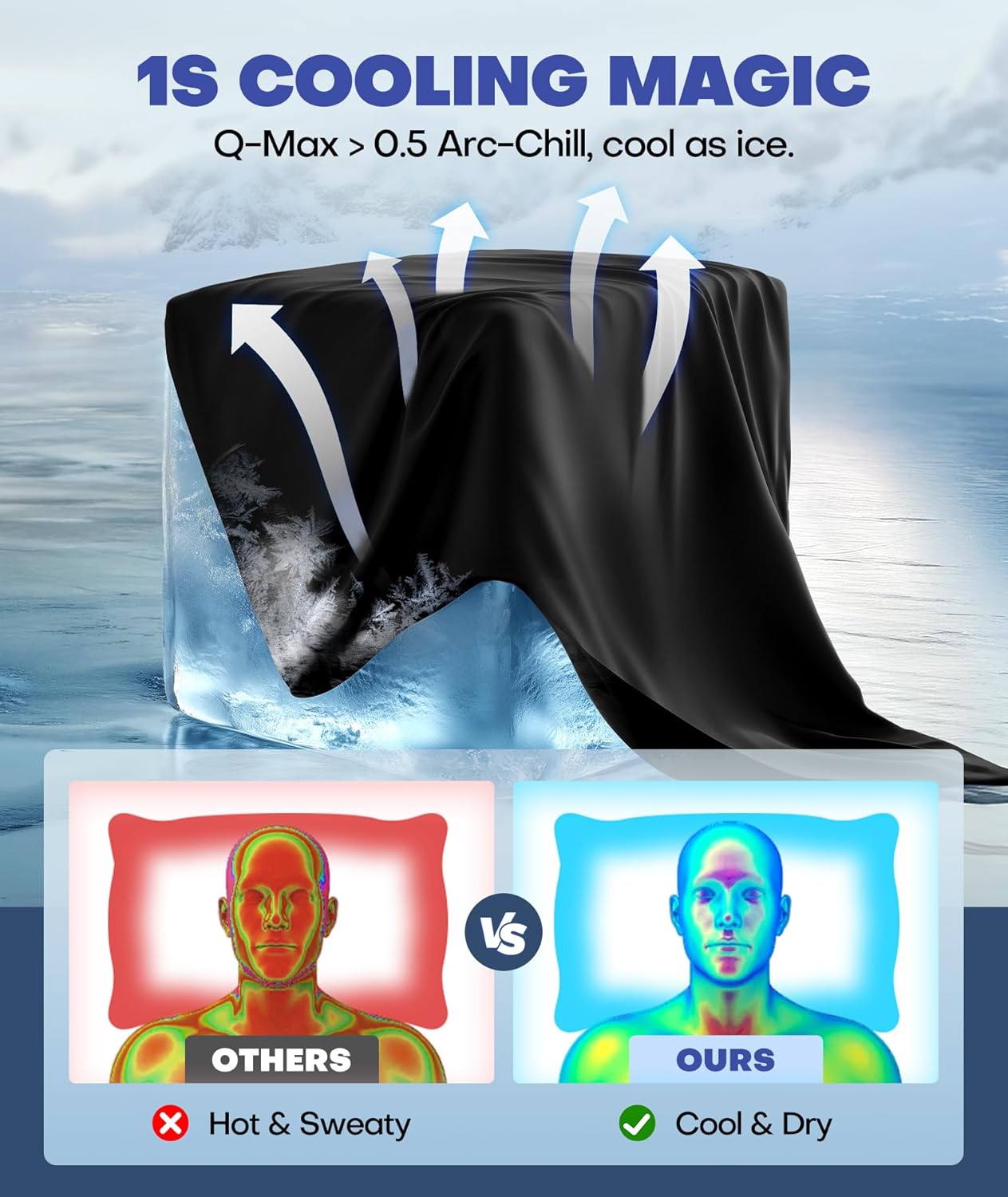 Ice Cooling Pillowcase for Hot Sleepers โ Instantly Cool, Stays Cold All Night, Smoother Than Silk Pillow Cases, Pillow Covers with Invisible Zipper, Gift for Men & Women - King Size, Black (1 Pack)