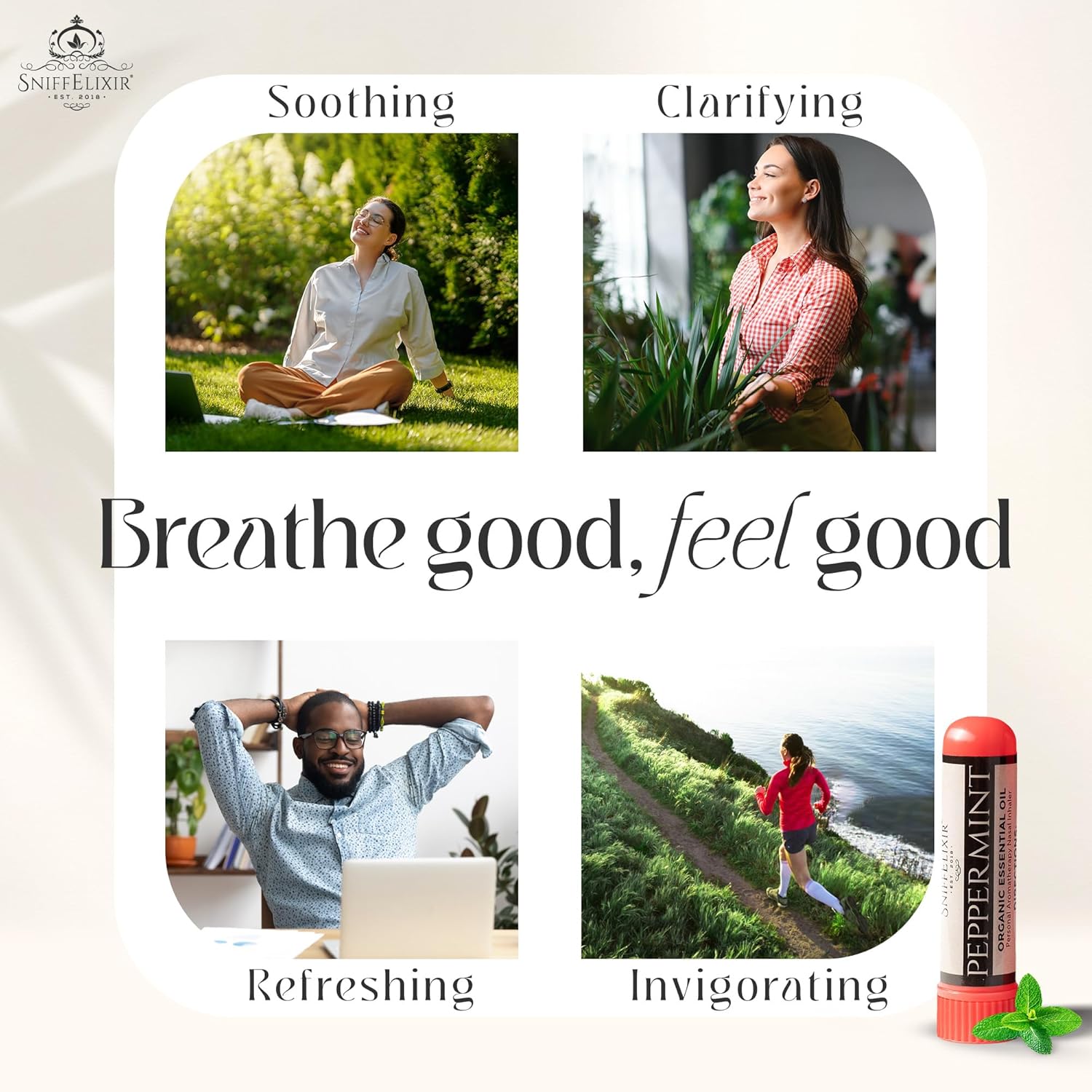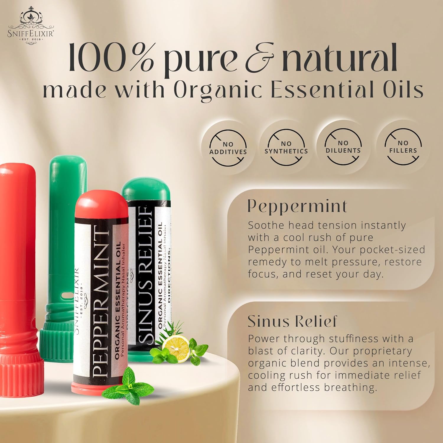 - RELIABLE BRAND YOU CAN TRUST: SniffElixir’s peppermint nose inhaler and essential oil nasal inhaler stick are made from natural ingredients to provide ease. As a trusted family-owned brand, SniffElixir is dedicated to offering nasal inhalers for essential oils that are free from harsh chemicals, focusing on delivering natural wellness solutions you can depend on.