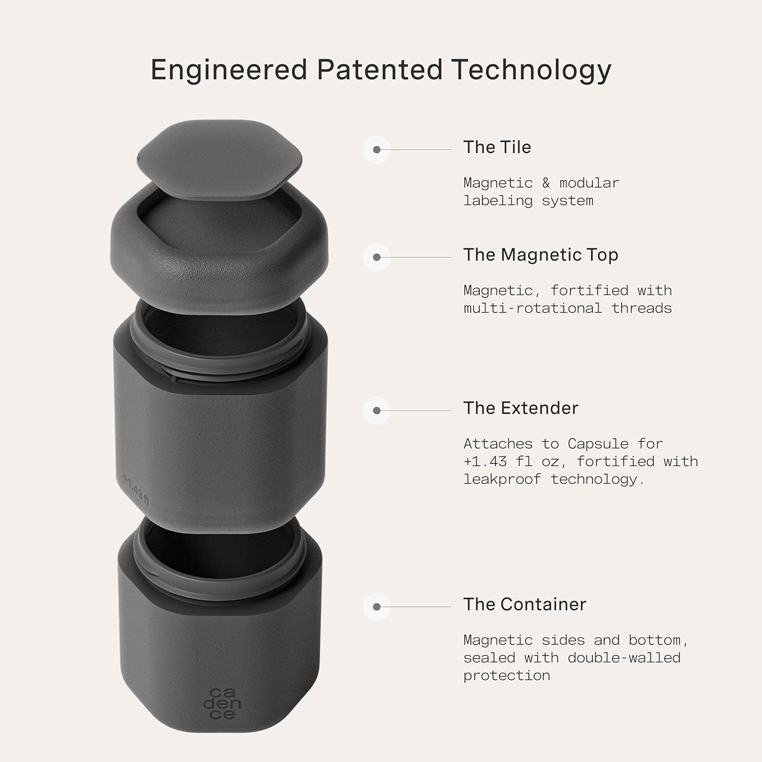 - PATENTED MAGNETIC DESIGN - Designed for seamless storage, our travel capsules feature a magnetic design that connects each container vertically or horizontally. They include magnetic labels that seamlessly swap between The Flex Small, The Flex Medium, and The Flex Large Capsules.