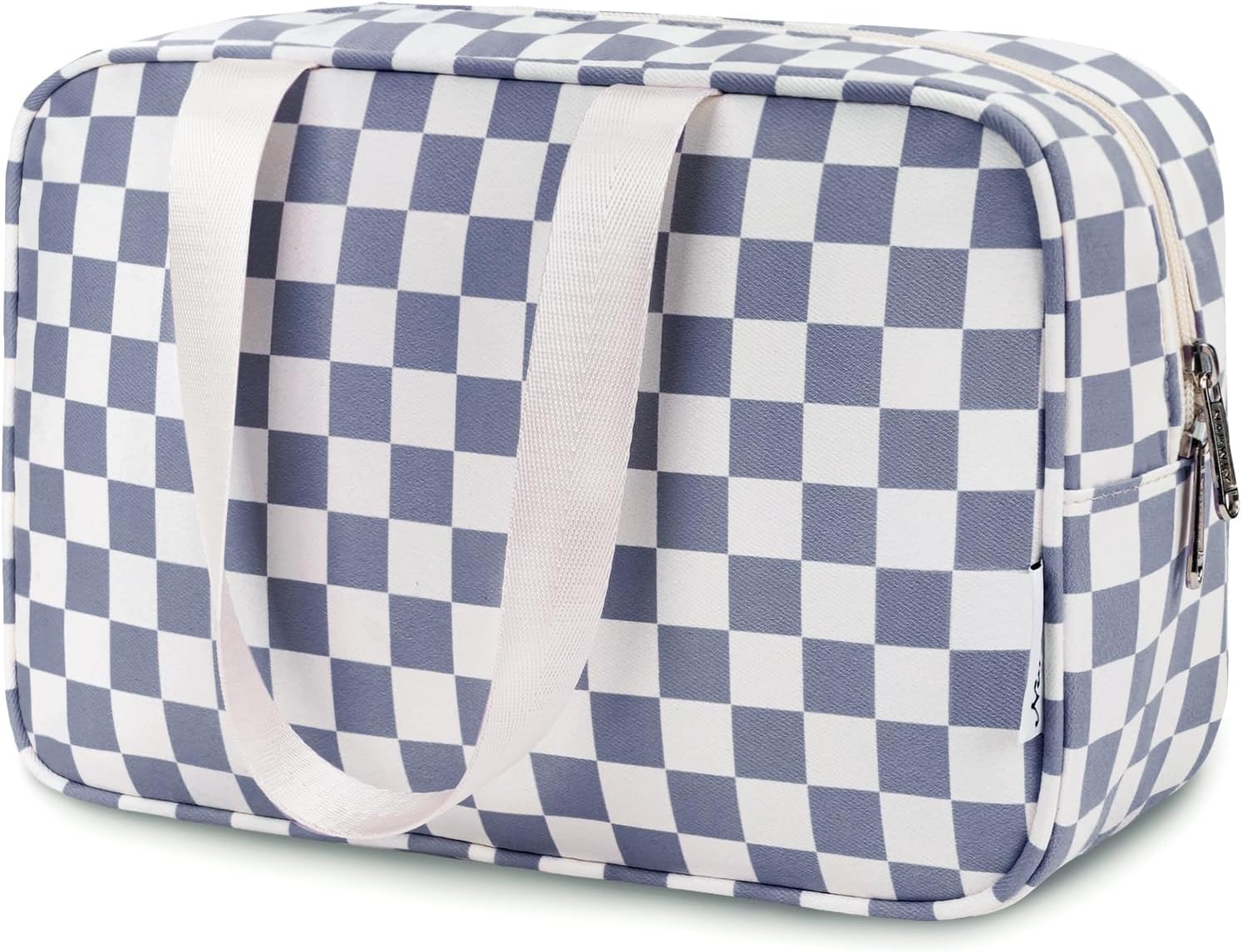 Narwey Large Toiletry Bag Women Large Cosmetic Bag Travel Makeup Bag Organizer Medicine Bag for Toiletries Essentials Accessories (Grayish Blue Checkerboard)