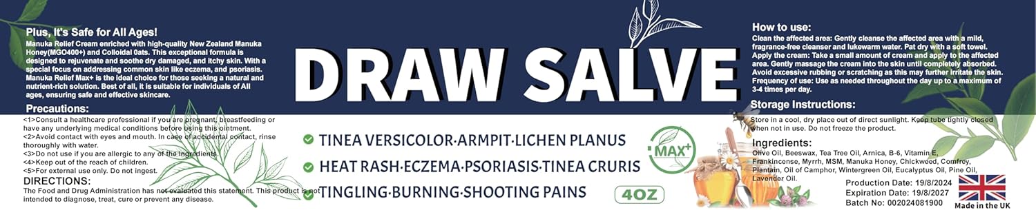 - Safe and gentle formulation: Your safety is paramount. Our Manuka Honey Balm is made from mild botanical ingredients and is paraben free. Gentle and non-irritating, it is suitable for all skin types, including sensitive skin. Safe for adults, children and expectant mothers, it is a reliable solution for conditions such as eczema and athlete's foot, providing comfort and ease.