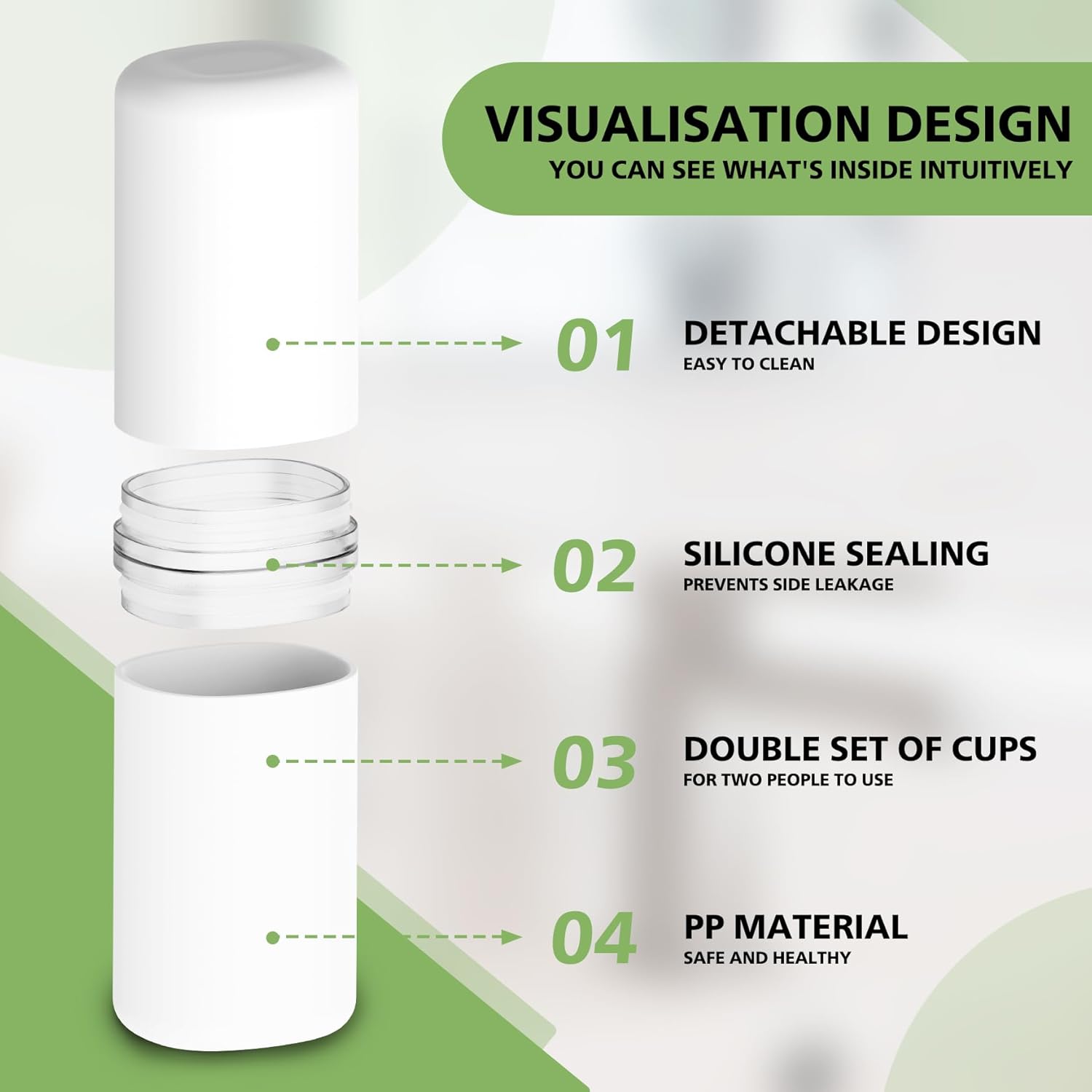 - VERSATILE AND PRACTICAL : The innovative design of our travel toothbrush case allows it to double as a mouthwash cup. It's a two-in-one solution, providing convenience and reducing the number of items you need to carry. Enjoy a refreshing mouthwash wherever you are. Integrated mouthwash cup allows you to rinse your mouth on-the-go.