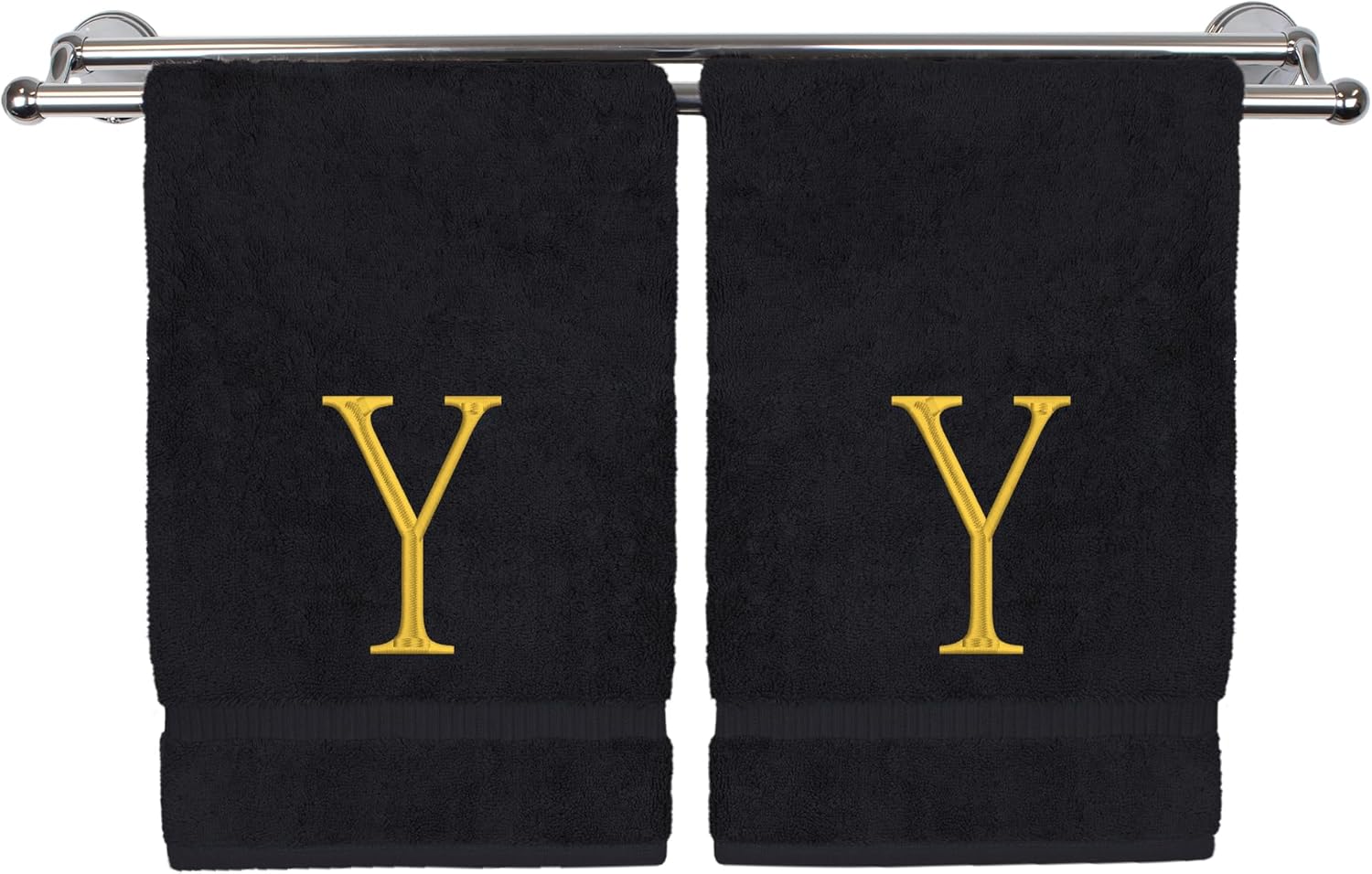 Monogrammed Hand Towel, Personalized Initial Gift, Extra Absorbent 100% Turkish Cotton - Soft Terry Finish - Set of 2 - Gold Block Initial Y - Embroidered on Black Towels