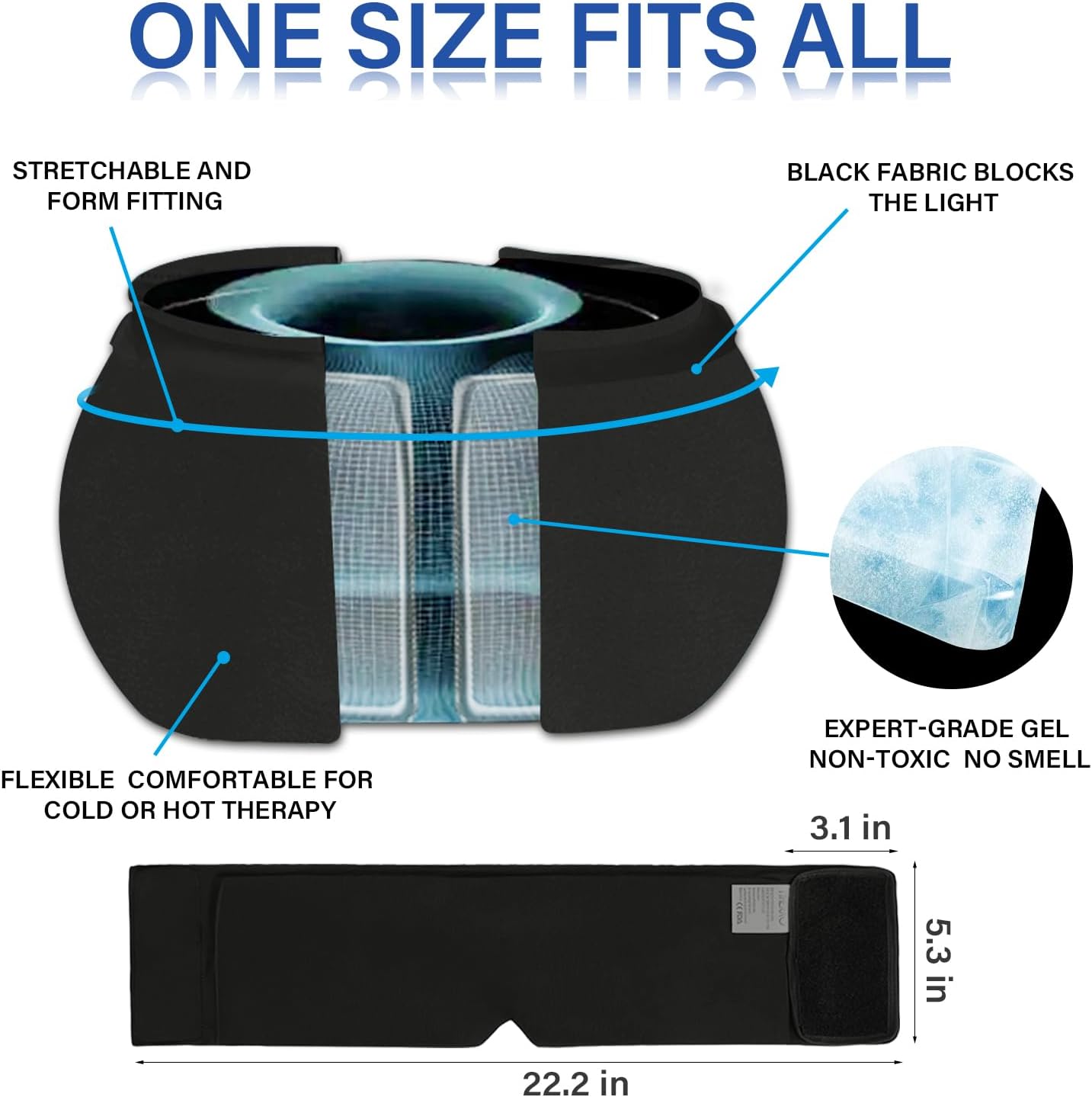 - Updated Odorless Material - Different from other old ice cap for migraines, our headache mask made with cutting-edge material and expert-grade gel, it's already cool without even frozen. Non-toxic and with no smell, thick solid gel stays cold longer, remains smooth and pliable when frozen, very cozy to wear. Stretchable gel conforms closely to all different head shape, gives tight compression to the head, provides more cold penetration to relieve headache, migraine and tension